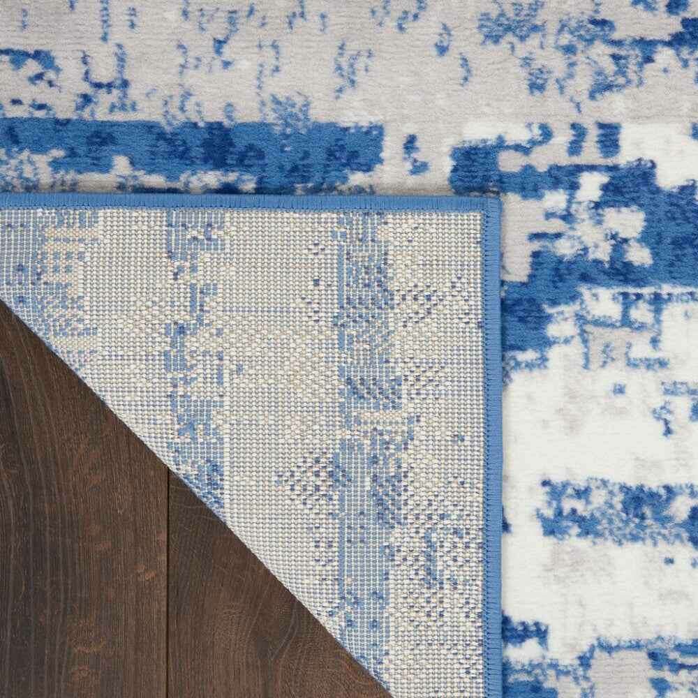 6' X 9' Blue And Ivory Ombre Dhurrie Area Rug