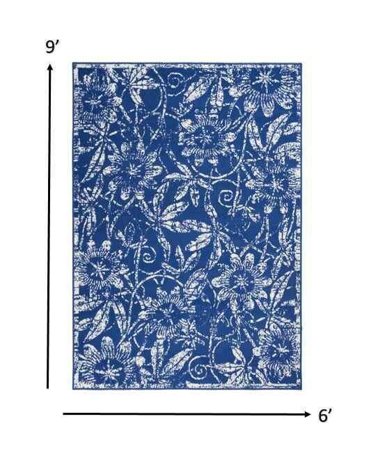 6' X 9' Navy Blue Floral Dhurrie Area Rug