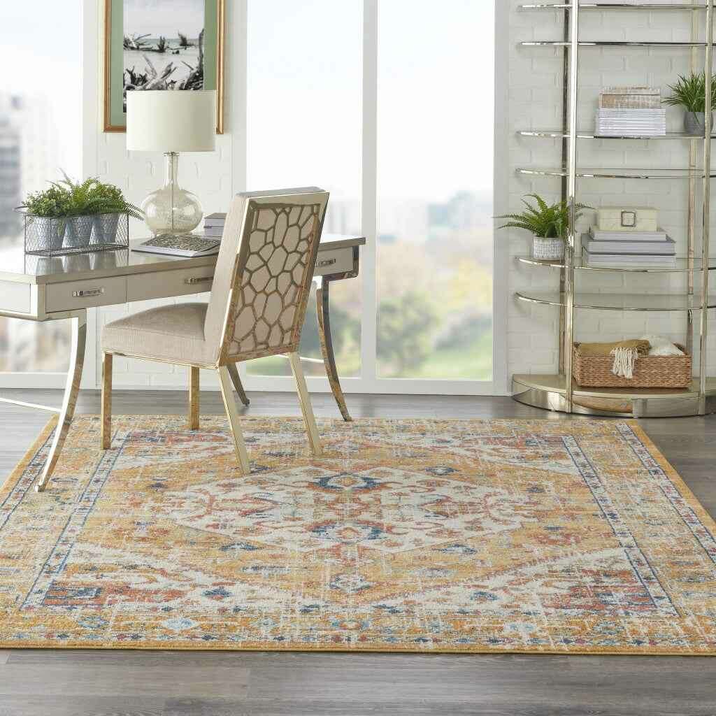 7' X 10' Yellow And Ivory Dhurrie Area Rug