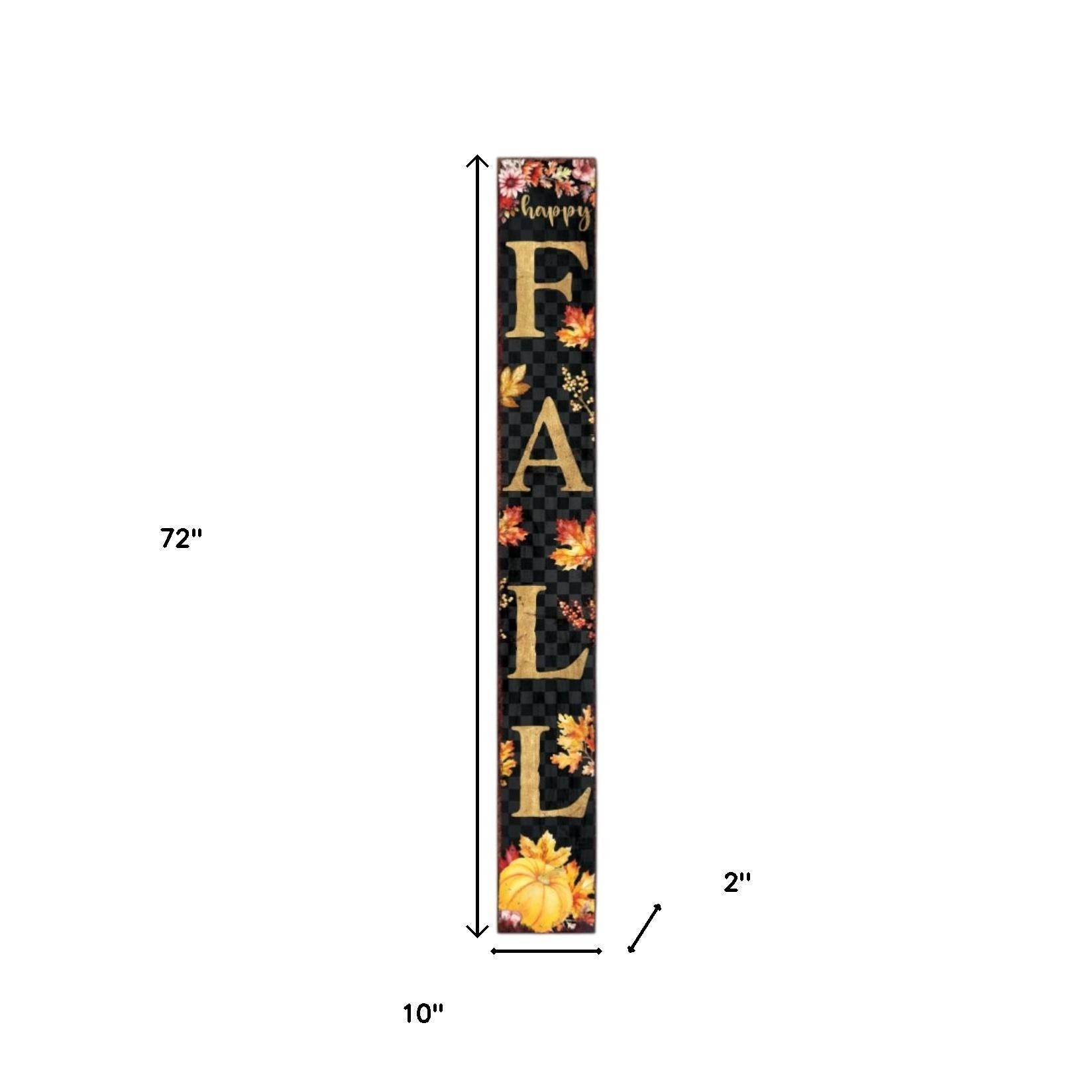 72" Black Gold And Orange Solid Wood Happy Fall Porch Sign