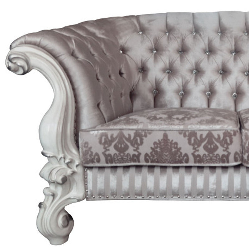 76" Ivory And Off White Velvet Loveseat and Toss Pillows