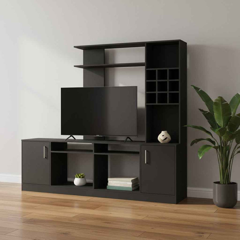78" Black Particle Board Open Shelving Entertainment Center