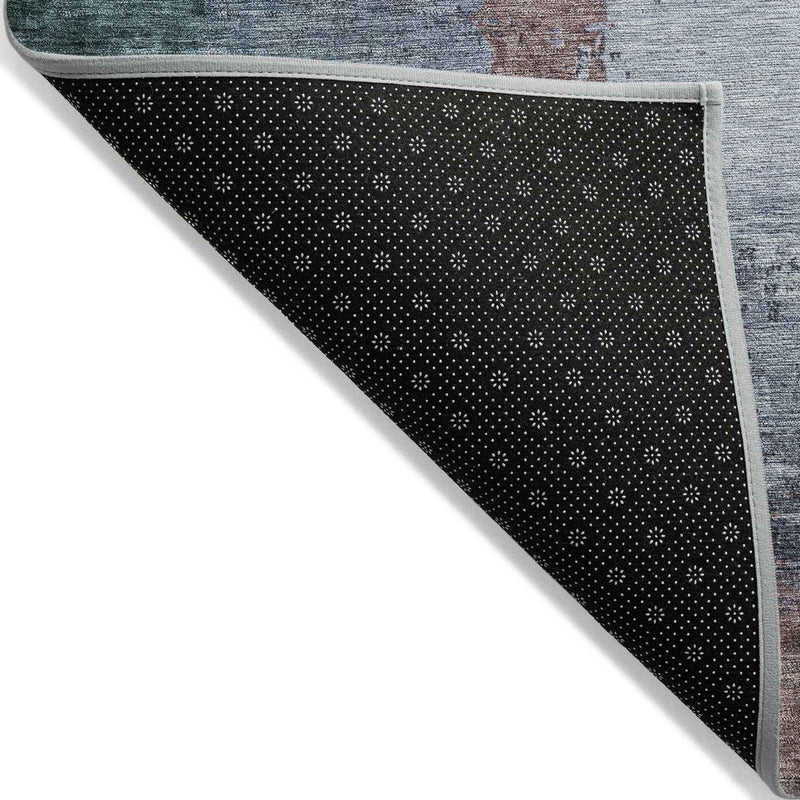 Set an inviting tone in your space with this 8-foot blue brown and mauve round abstract washable indoor outdoor area rug. This geometric round shaped rug features a abstract pattern in blue, brown, and mauve that combines a good looking print with a unique and updated shape. The mix of shape, color, and design gives this rug refreshing visual interest. Ideal for outdoor spaces or high traffic areas with kids and pets, this rug is made from heavy duty polyester that is stain resistant to help repel water, dirt, and stains. Versatile in use, durable, and easy to maintain, this rug is an ideal solution to add a decorative and inviting touch to your indoor or outdoor space. 96-inch h x 96-inch w x 0.19-inch d.