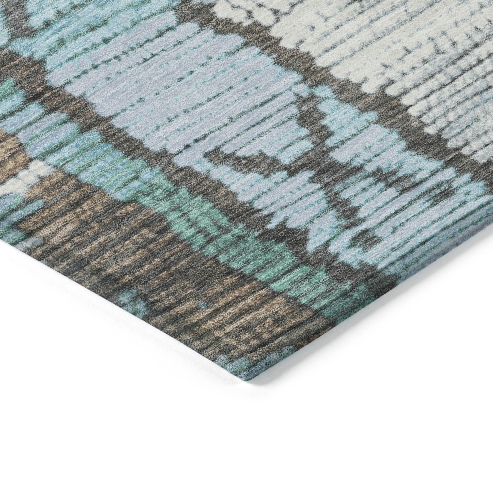 Add some artistry to your room with this 8-foot brown and teal blue round tribal washable indoor outdoor area rug. This geometric round shaped rug features a tribal pattern in brown and teal blue that combines a good looking print with a unique and updated shape. The mix of shape, color, and design gives this rug refreshing visual interest. Ideal for outdoor spaces or high traffic areas with kids and pets, this rug is made from heavy duty polyester that is stain resistant to help repel water, dirt, and stains. Makes a great way to dress up your patio, porch, or poolside, but also works well as a durable and easy to maintain option in the kitchen, family room, or mudroom. 96-inch h x 96-inch w x 0.19-inch d.
