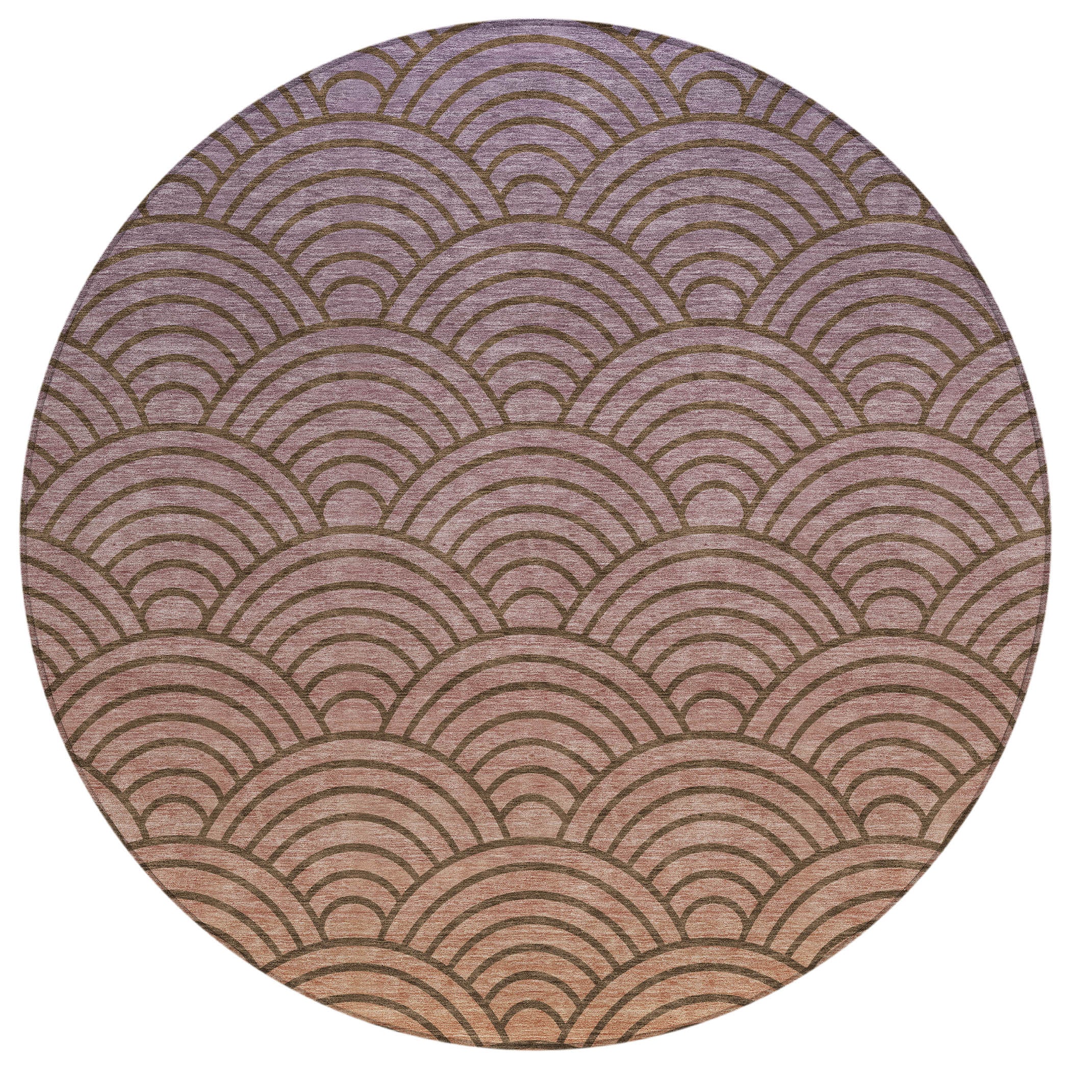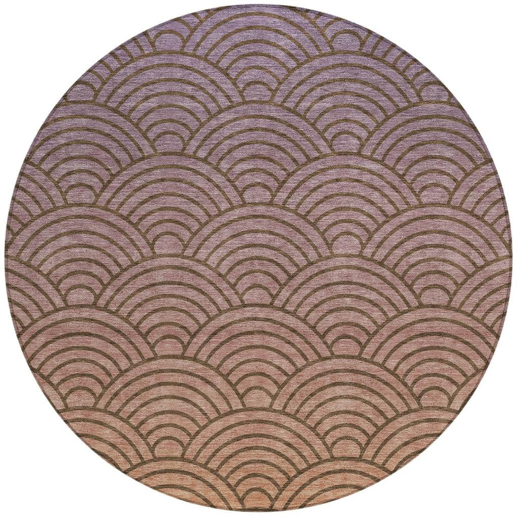 8' Chocolate Purple And Mauve Round Geometric Washable Indoor Outdoor Area Rug