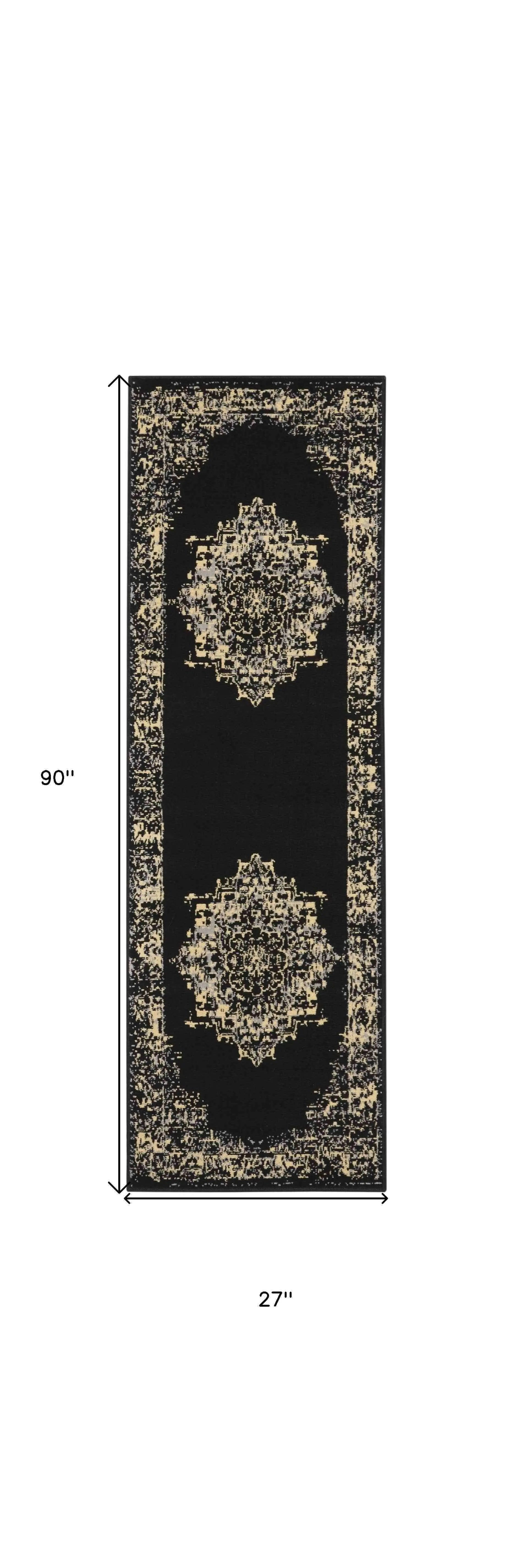 8' Cream Damask Power Loom Runner Rug