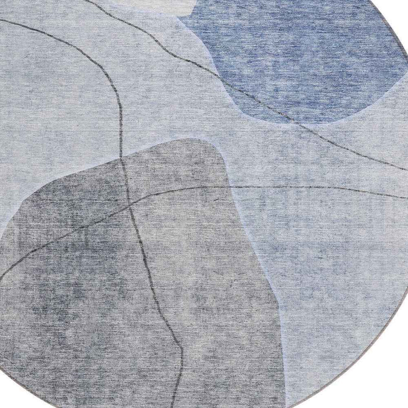 8' Denim Blue And Sky Blue Round Abstract Washable Indoor Outdoor Area Rug