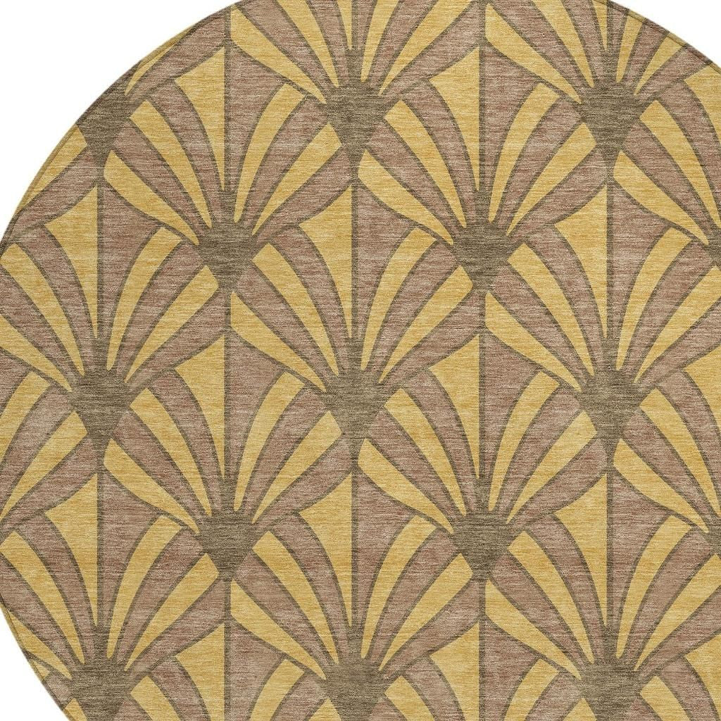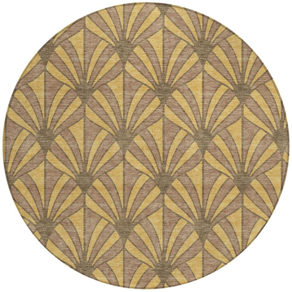 8' Gold And Brown Round Seashell Washable Indoor Outdoor Area Rug