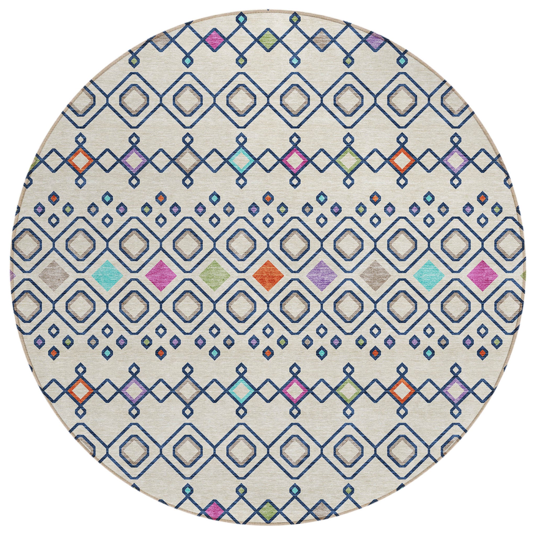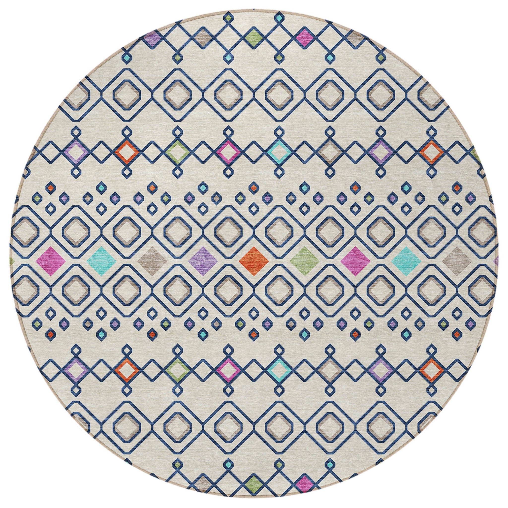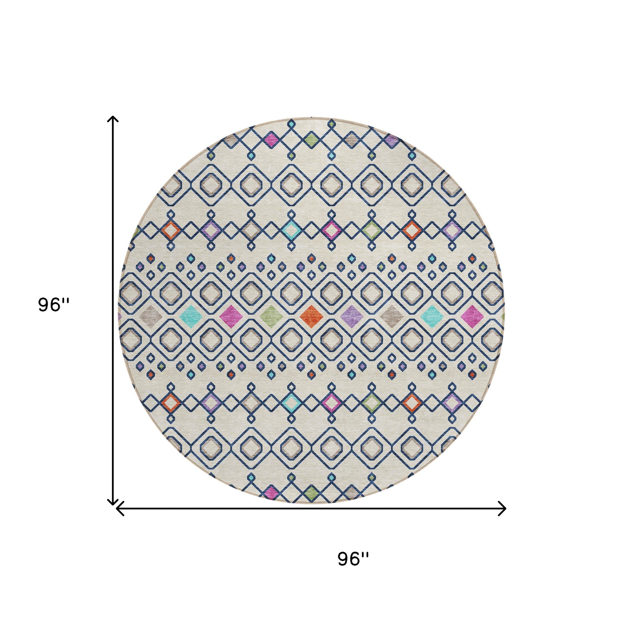 8' Linen Pink And Orange Round Geometric Washable Indoor Outdoor Area Rug