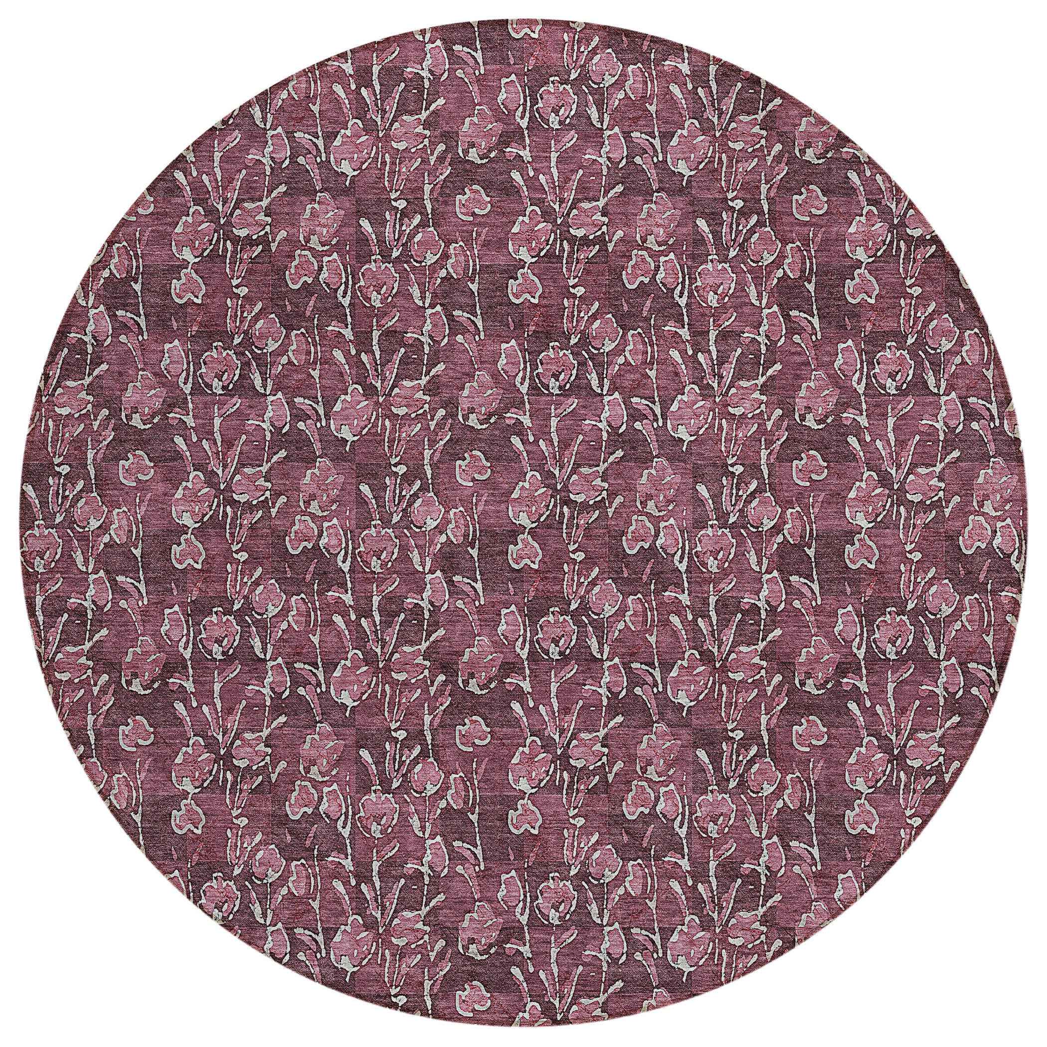 8' Merlot Mauve And Ivory Round Floral Washable Indoor Outdoor Area Rug