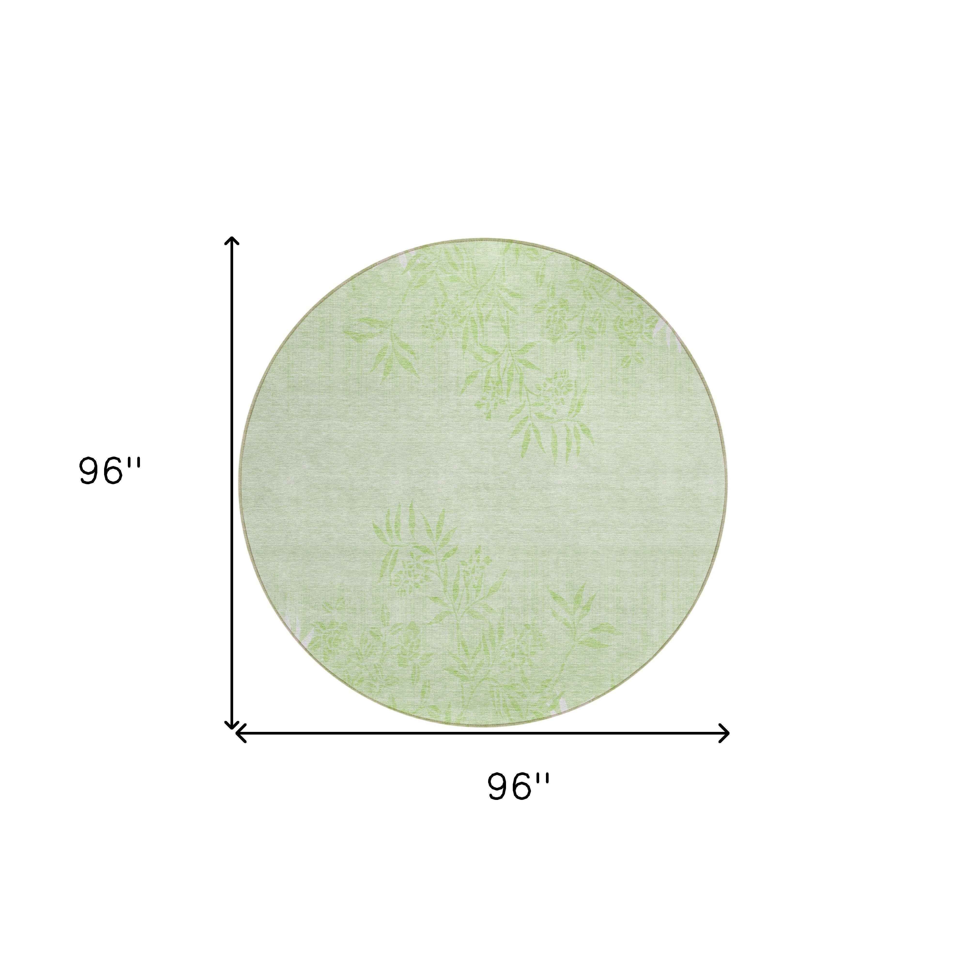 8' Mint Green Artichoke Green And Ivory Round Floral Washable Indoor Outdoor Area Rug