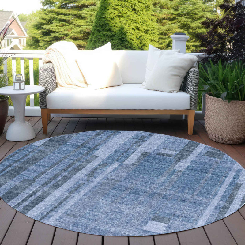 8' Navy Blue And Gray Round Striped Washable Indoor Outdoor Area Rug