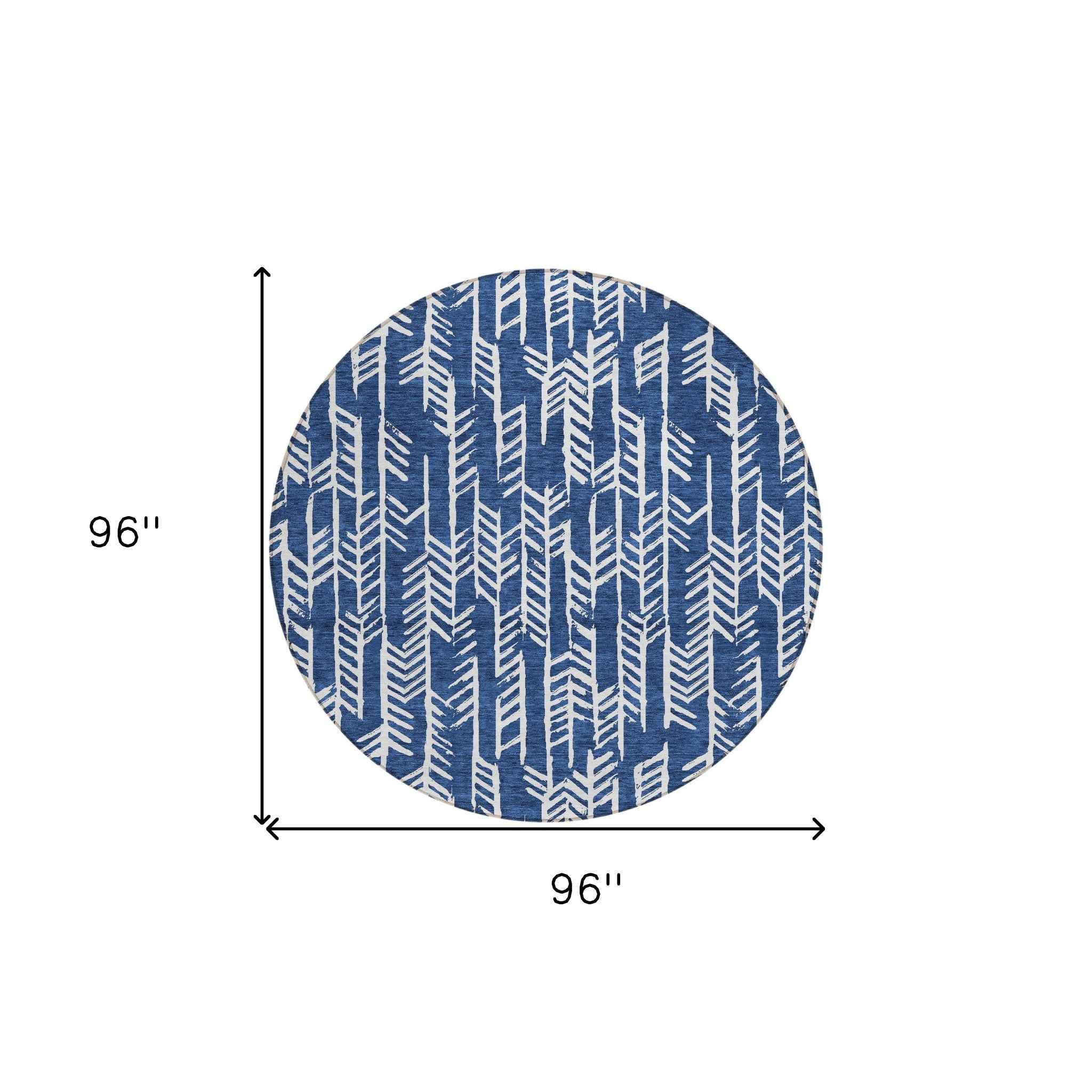 8' Navy Blue And Ivory Round Tribal Washable Indoor Outdoor Area Rug
