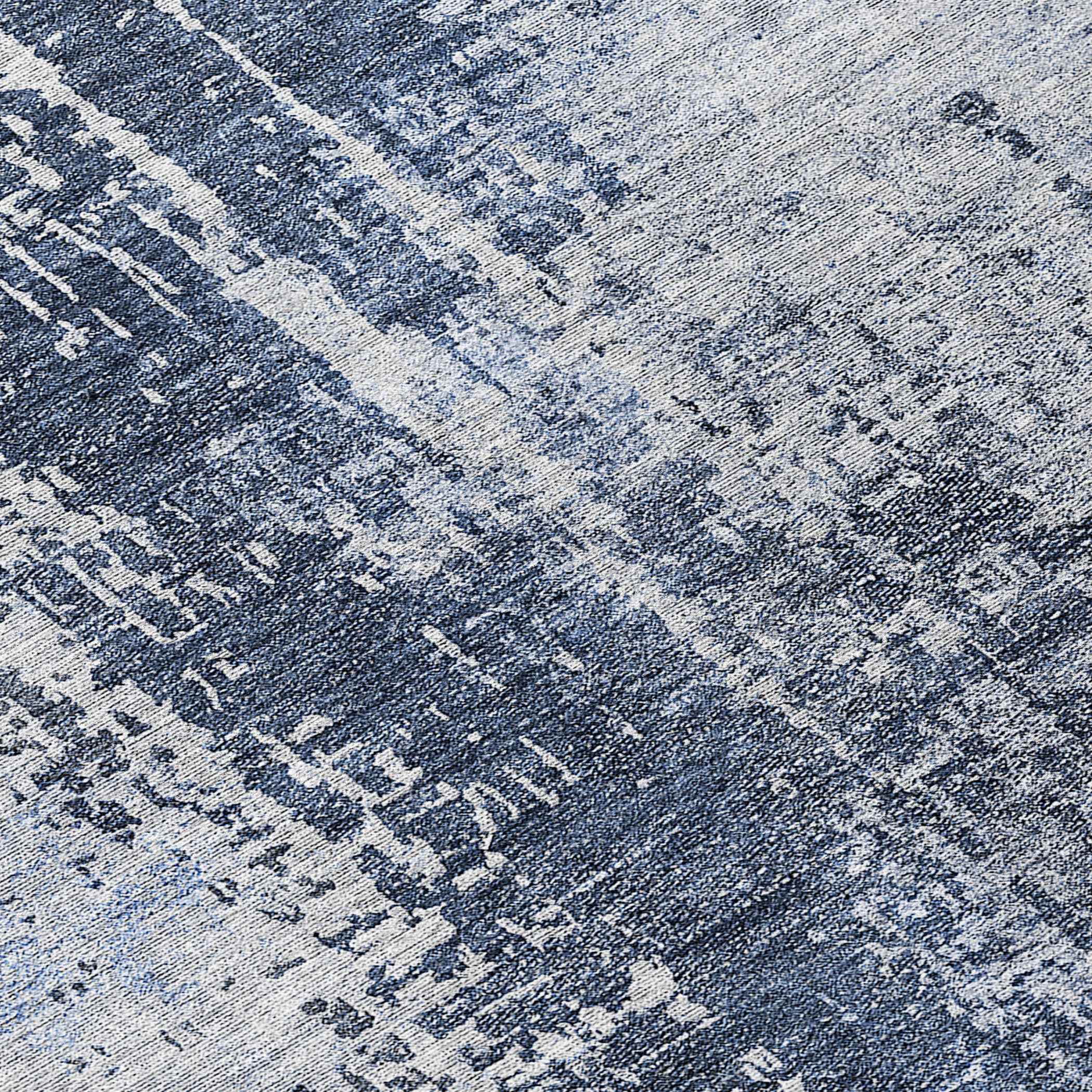 This 8-foot navy blue and sky blue round abstract washable indoor outdoor area rug, is a great way to add warmth to a room. This geometric round shaped rug features a abstract pattern in navy blue and sky blue that combines a good looking print with a unique and updated shape. The mix of shape, color, and design gives this rug refreshing visual interest. Ideal for outdoor spaces or high traffic areas with kids and pets, this rug is made from heavy duty polyester that is stain resistant to help repel water, dirt, and stains. Makes a great way to dress up your patio, porch, or poolside, but also works well as a durable and easy to maintain option in the kitchen, family room, or mudroom. 96-inch h x 96-inch w x 0.19-inch d.