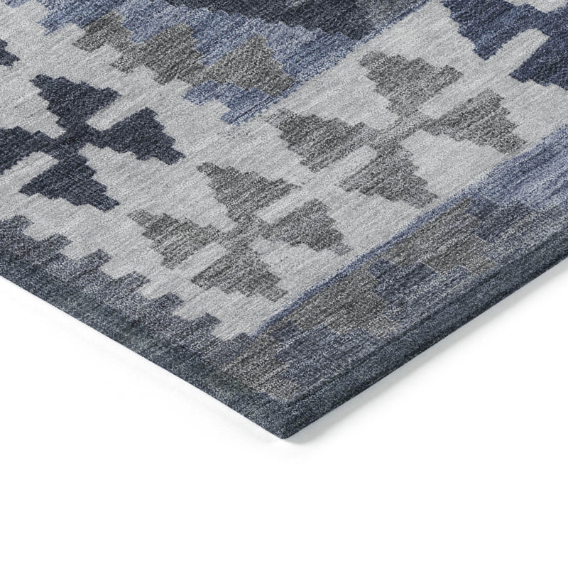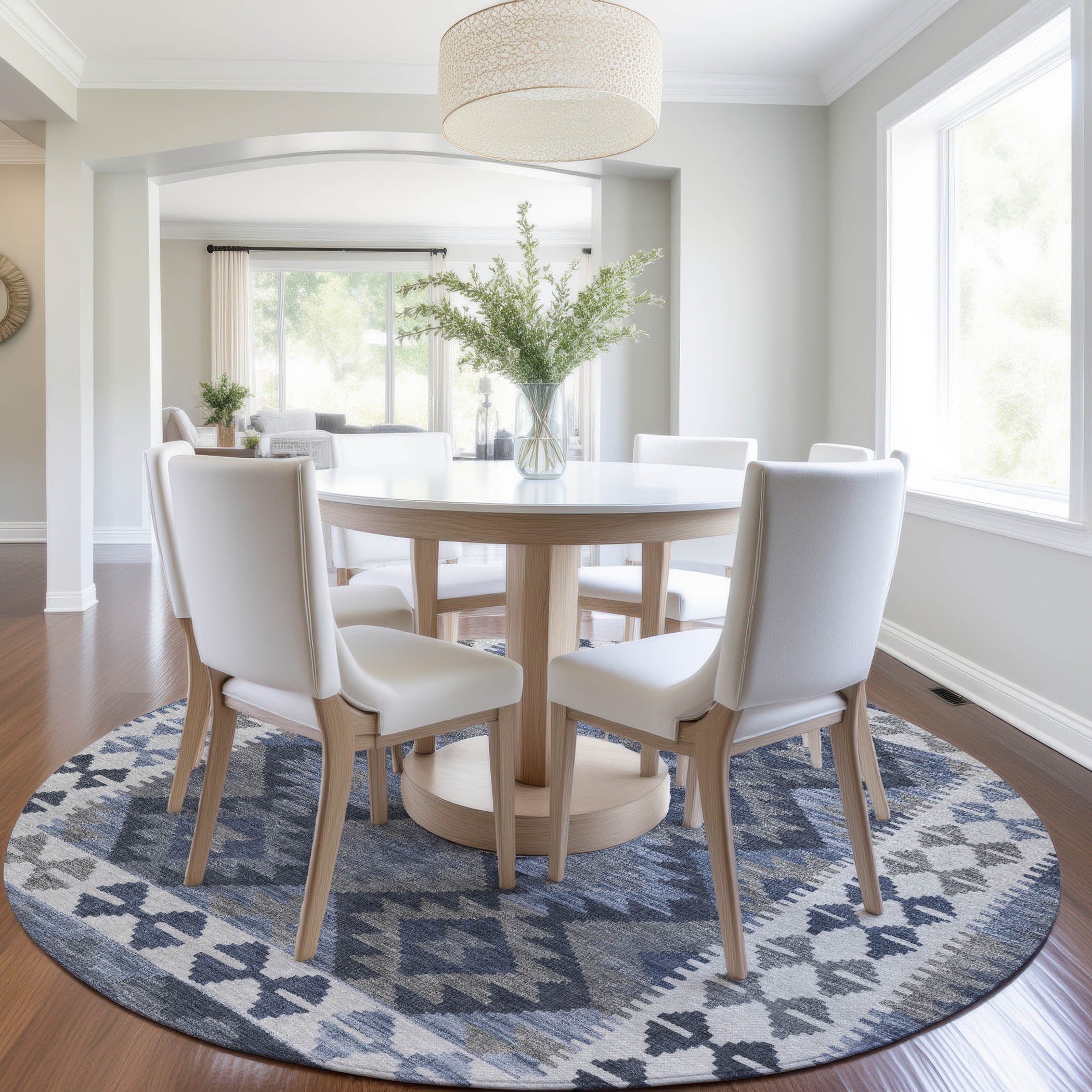 8' Navy Blue Ivory And Gray Round Tribal Washable Indoor Outdoor Area Rug 跳到内容