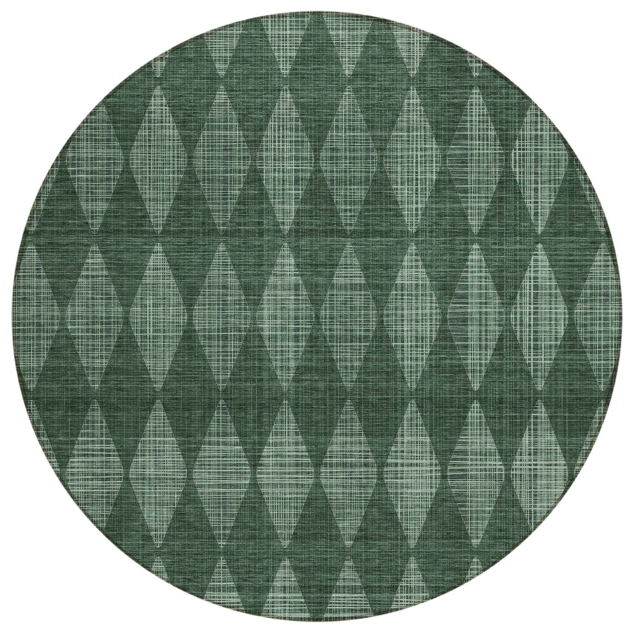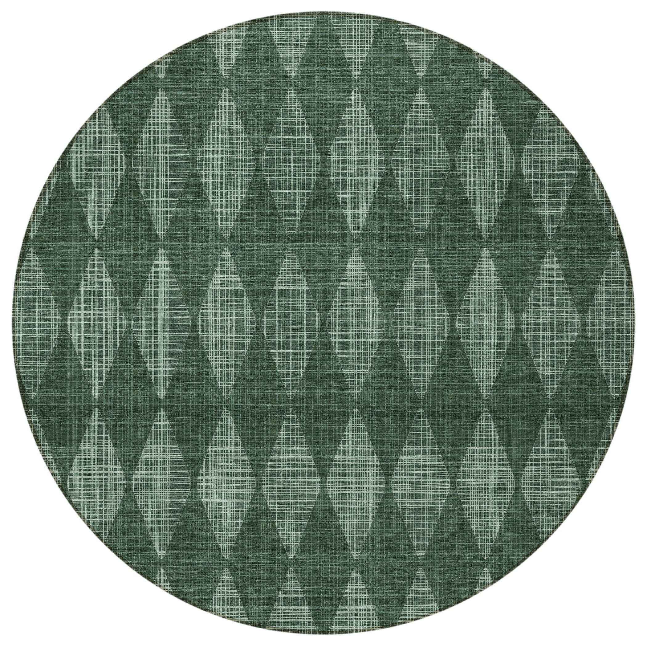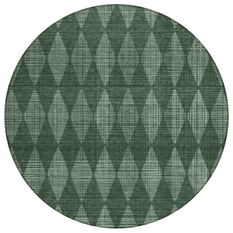 8' Olive Green And Charcoal Round Geometric Washable Indoor Outdoor Area Rug