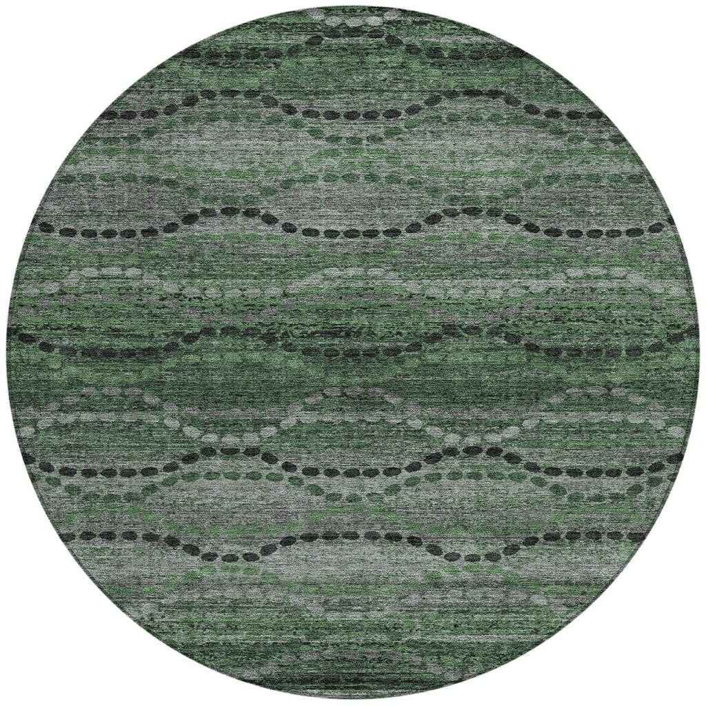 8' Olive Green And Gray Round Ogee Washable Indoor Outdoor Area Rug