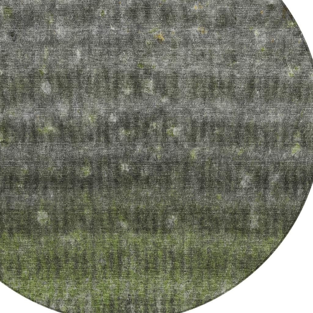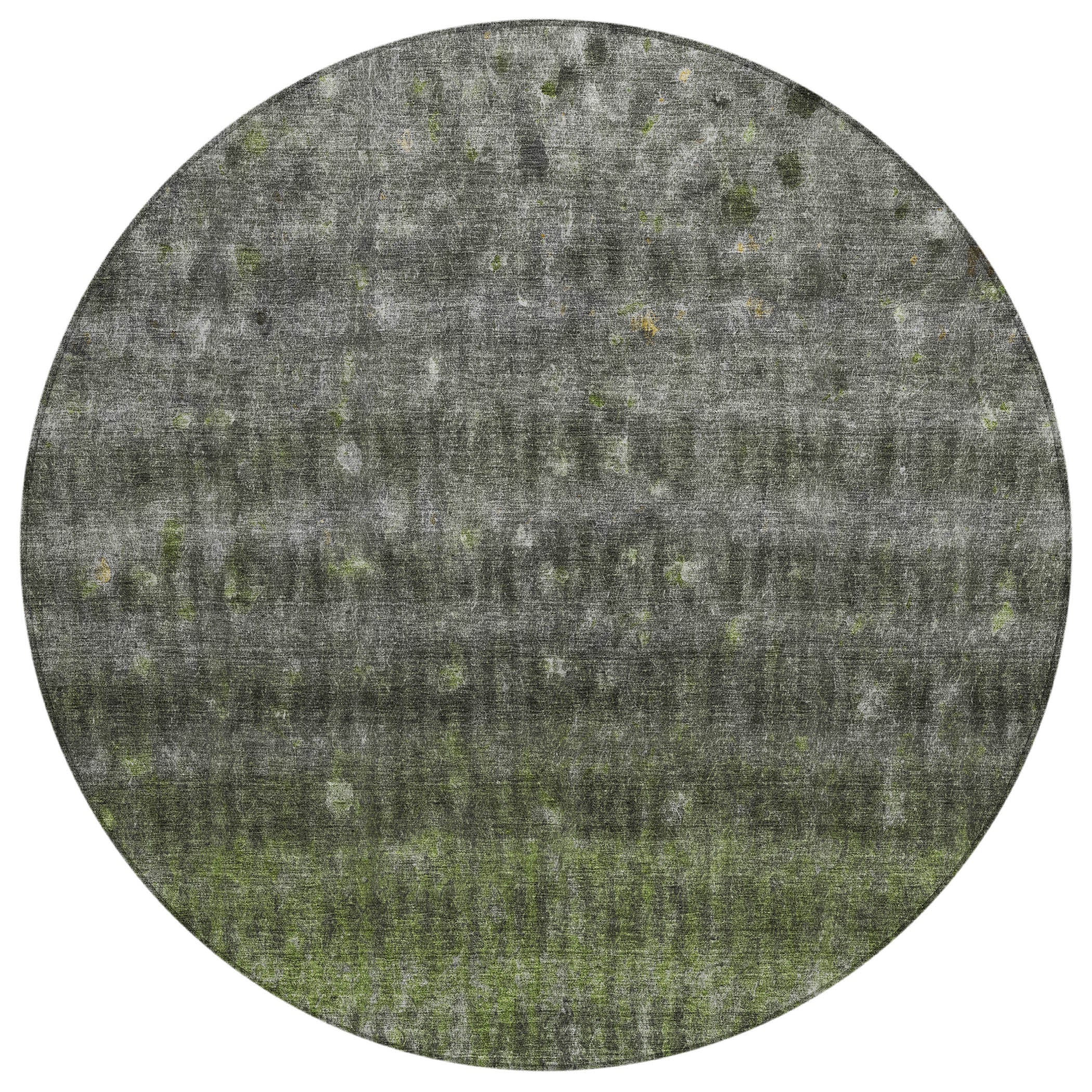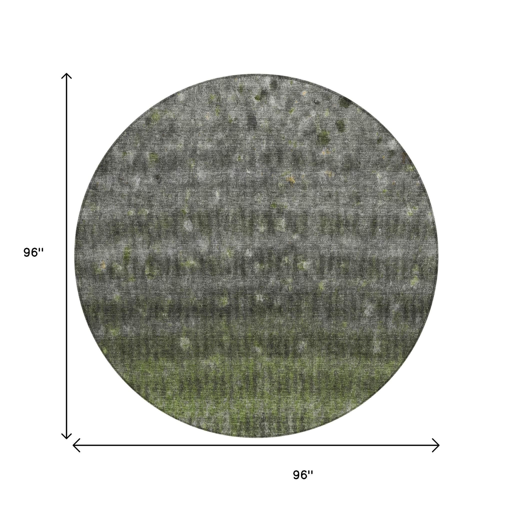 8' Olive Green And Gray Round Striped Washable Indoor Outdoor Area Rug