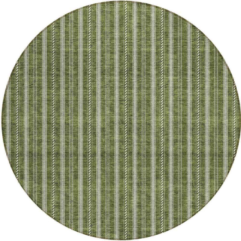 8' Olive Green And Ivory Round Striped Washable Indoor Outdoor Area Rug