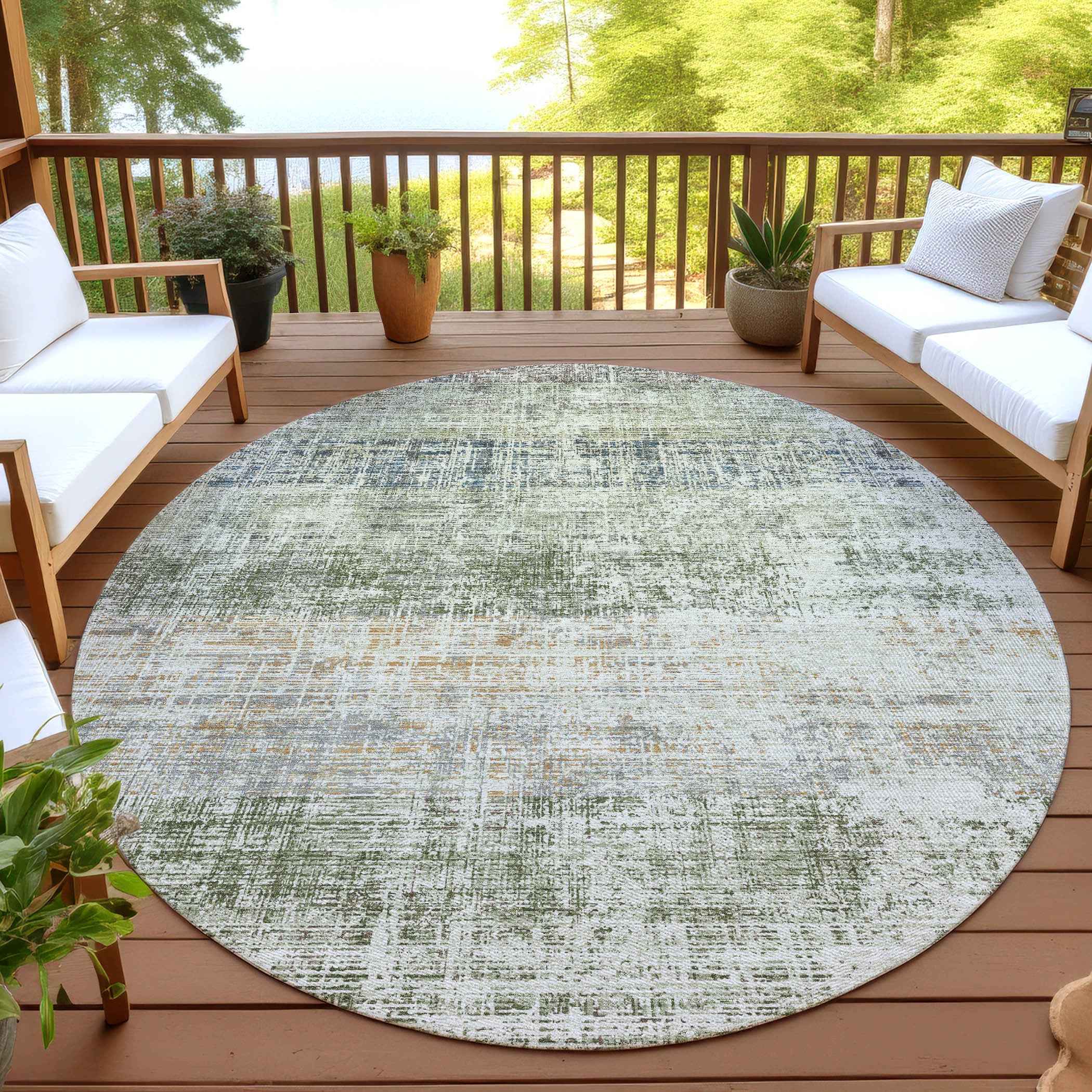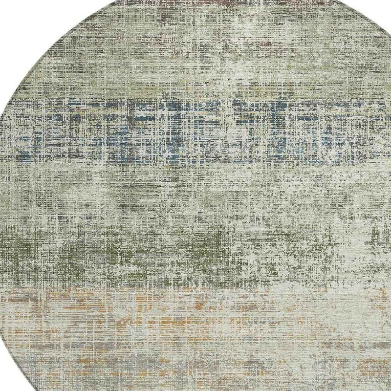8' Olive Green Beige And Brown Round Striped Washable Indoor Outdoor Area Rug