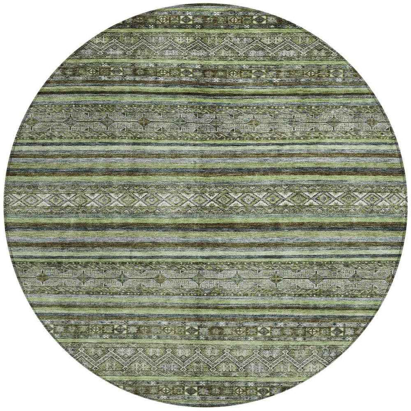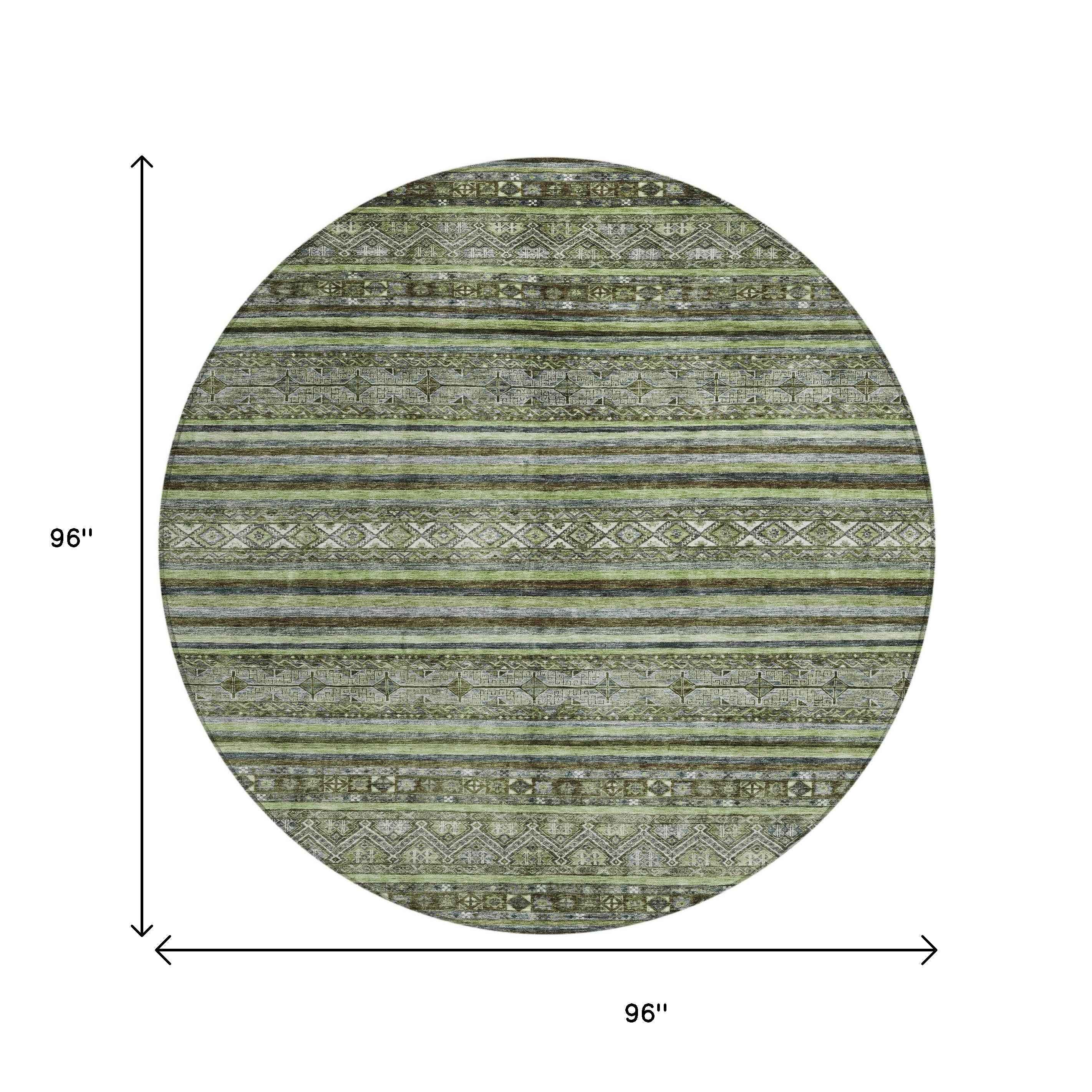 8' Olive Green Gray And Fern Green Round Southwestern Washable Indoor Outdoor Area Rug