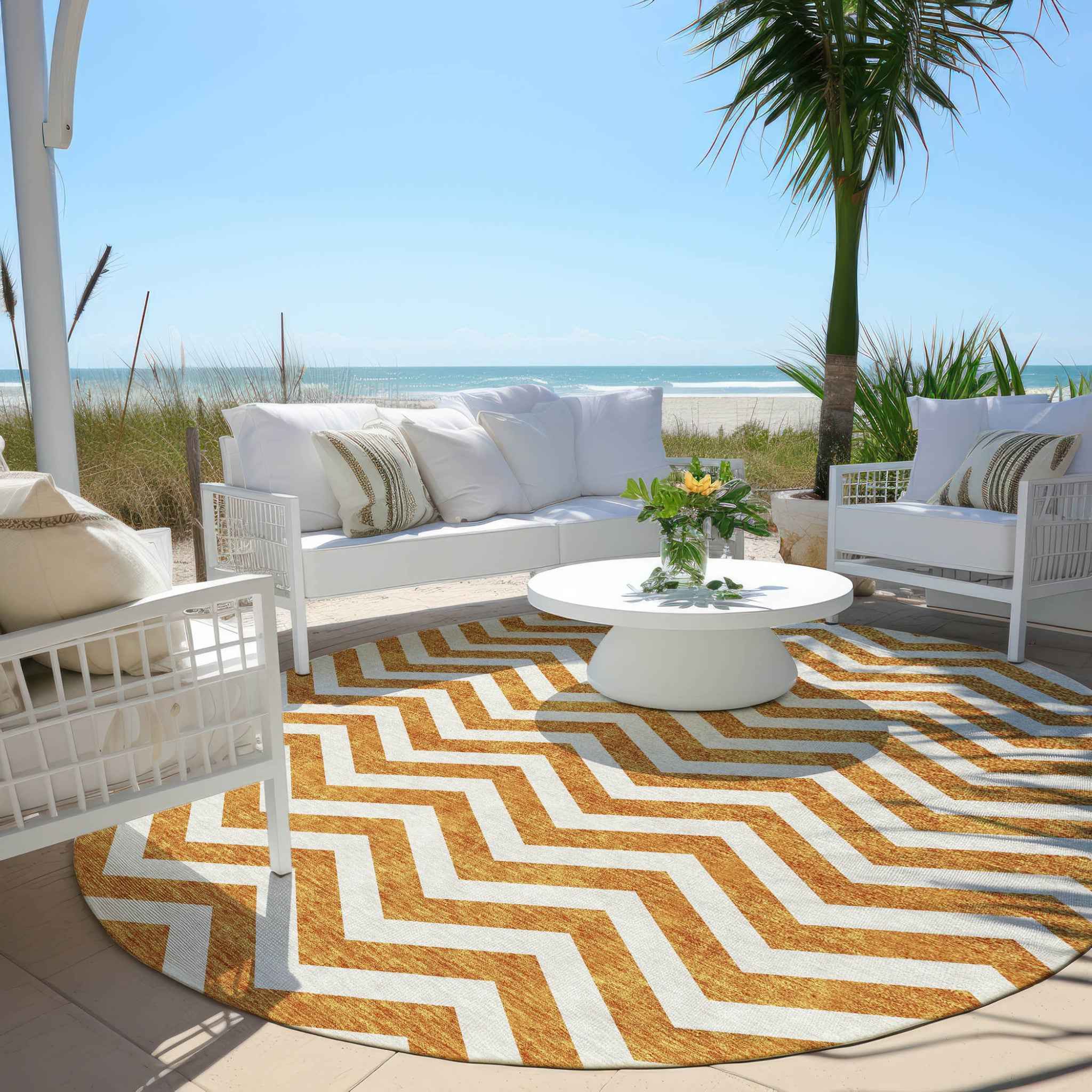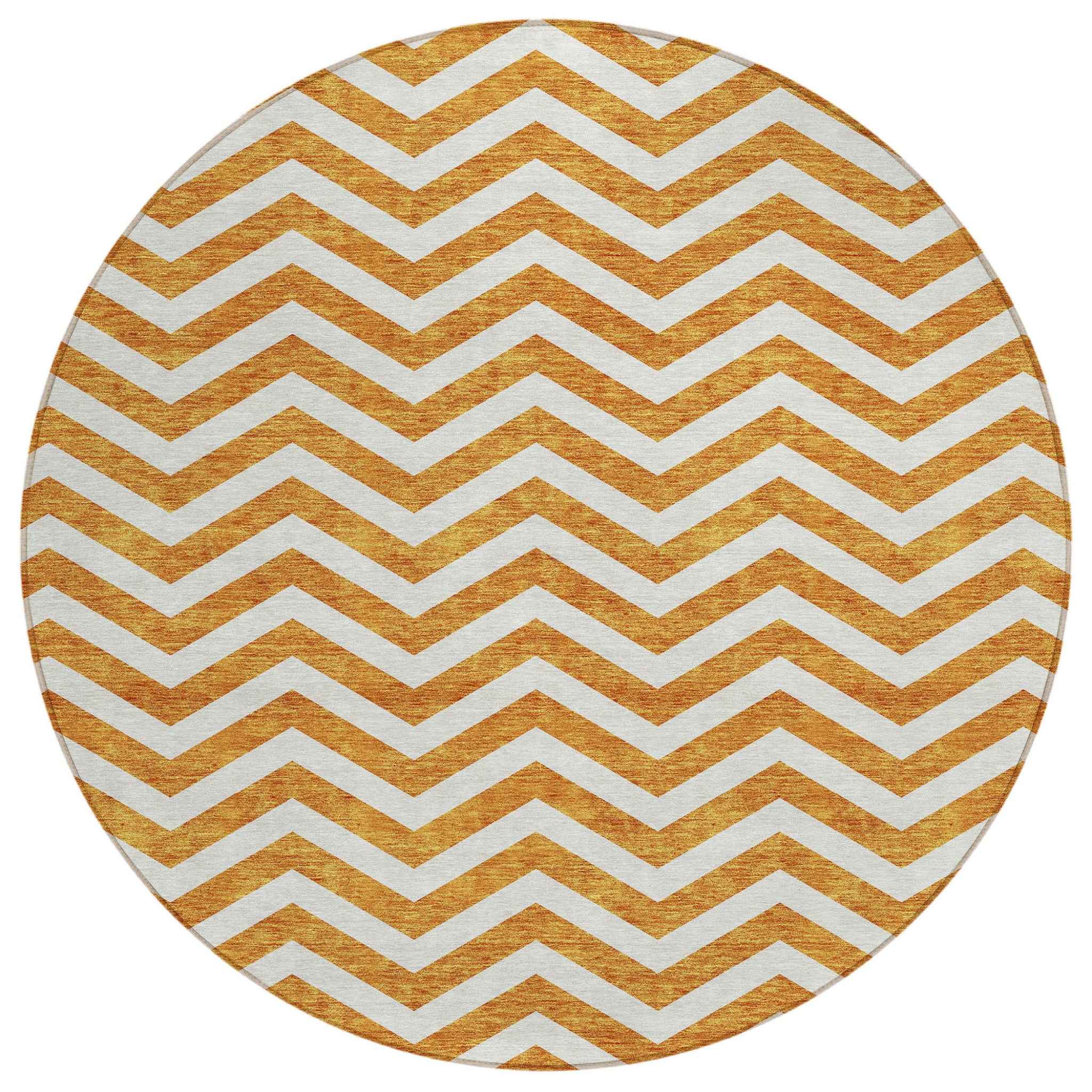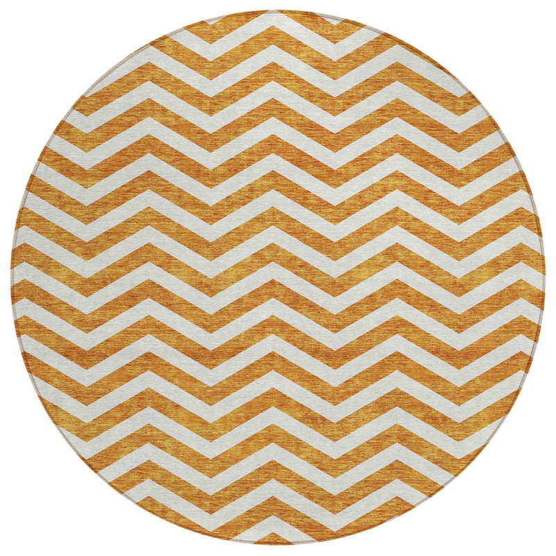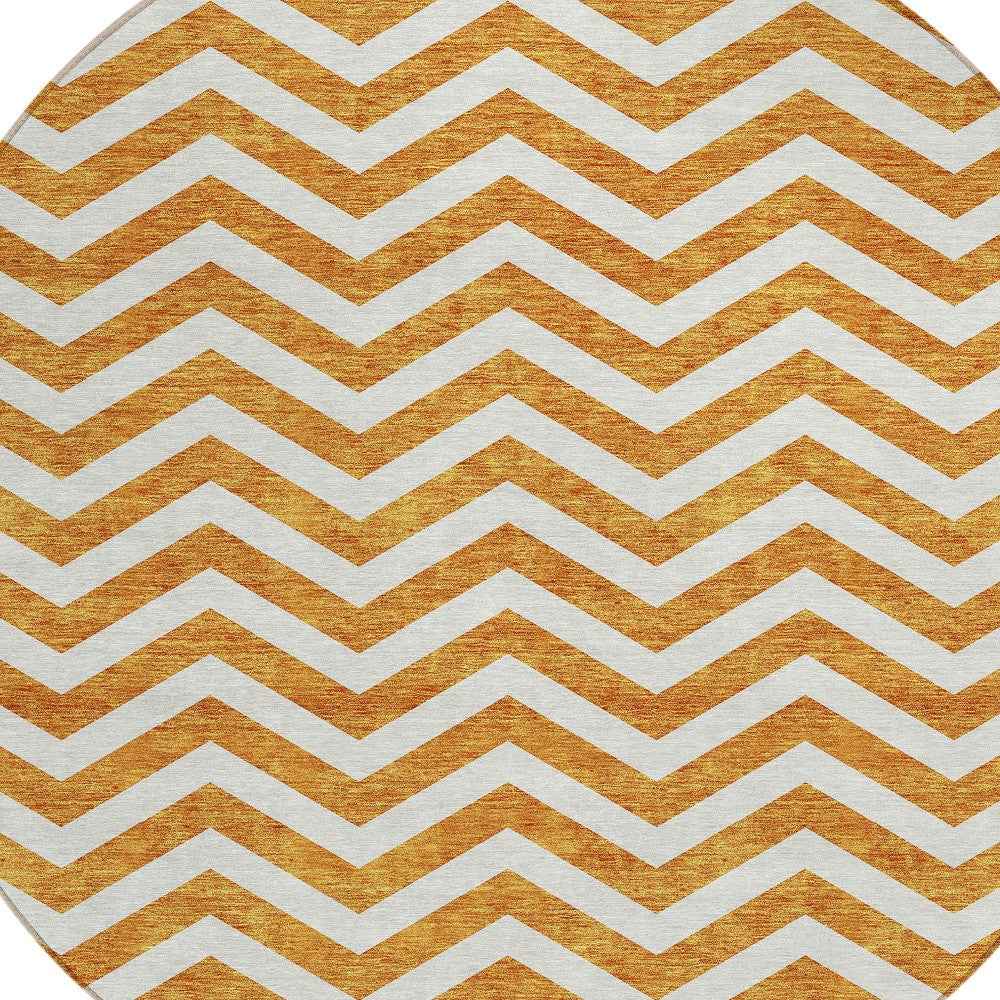 8' Orange And Beige Round Chevron Washable Indoor Outdoor Area Rug