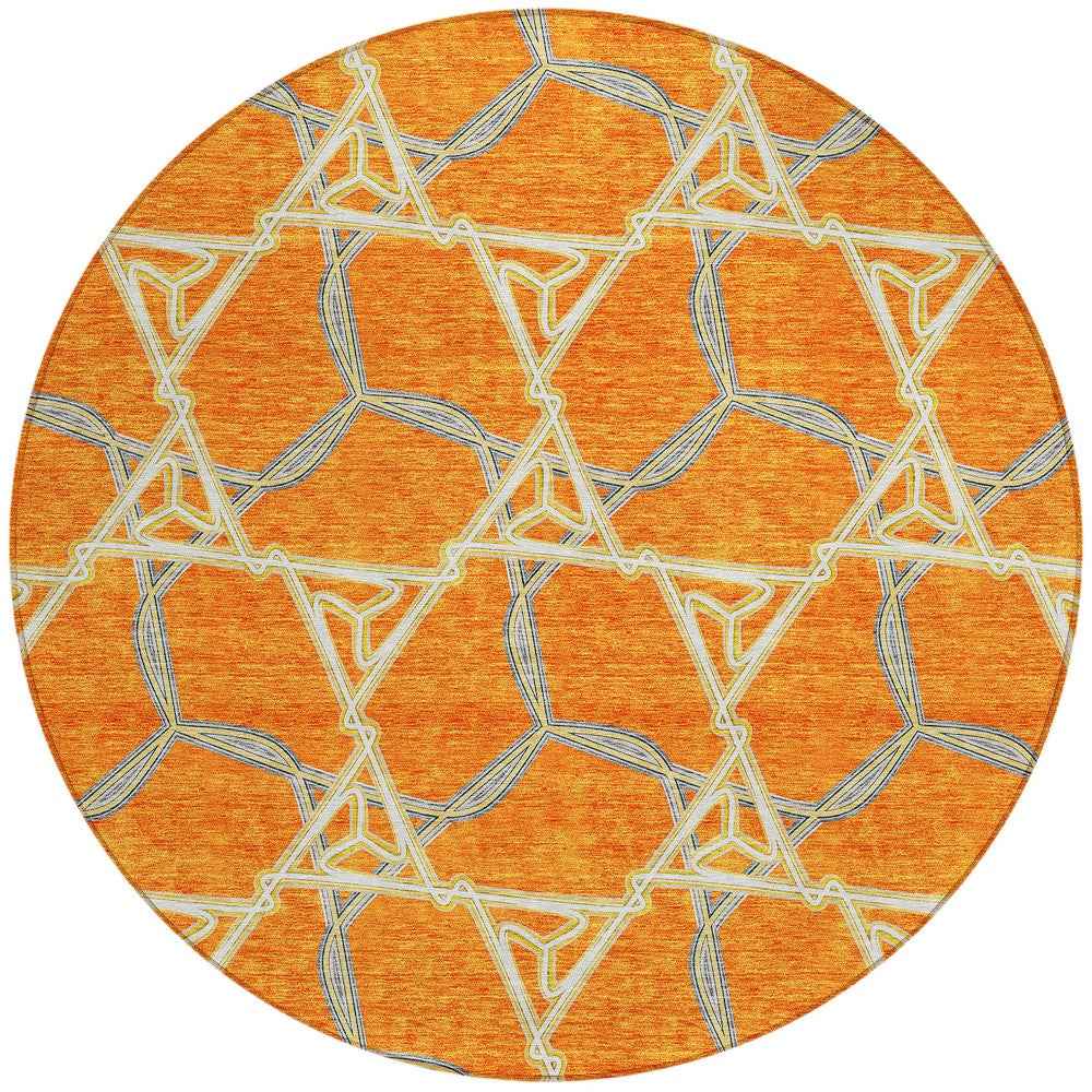 8' Orange And Blue Round Geometric Washable Indoor Outdoor Area Rug