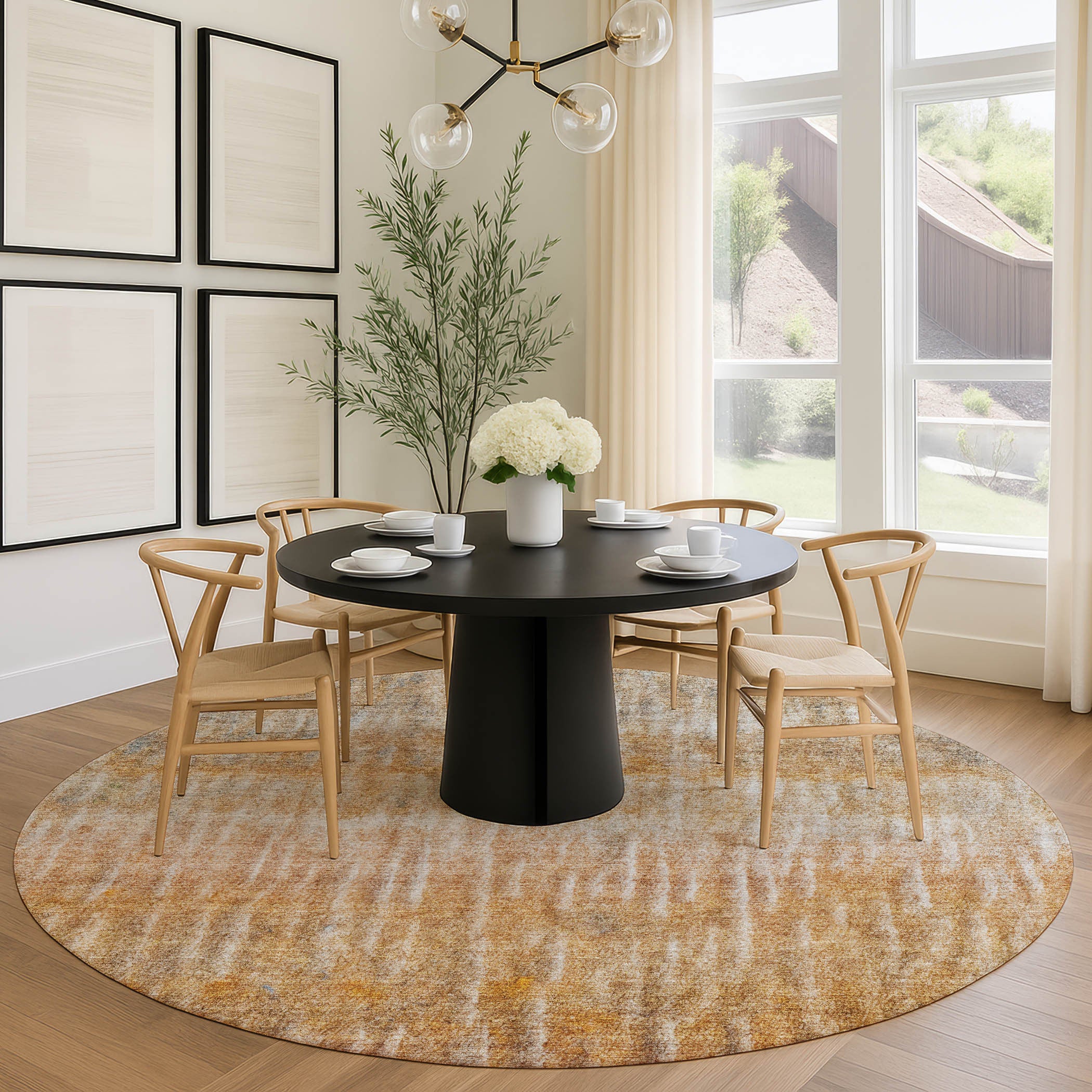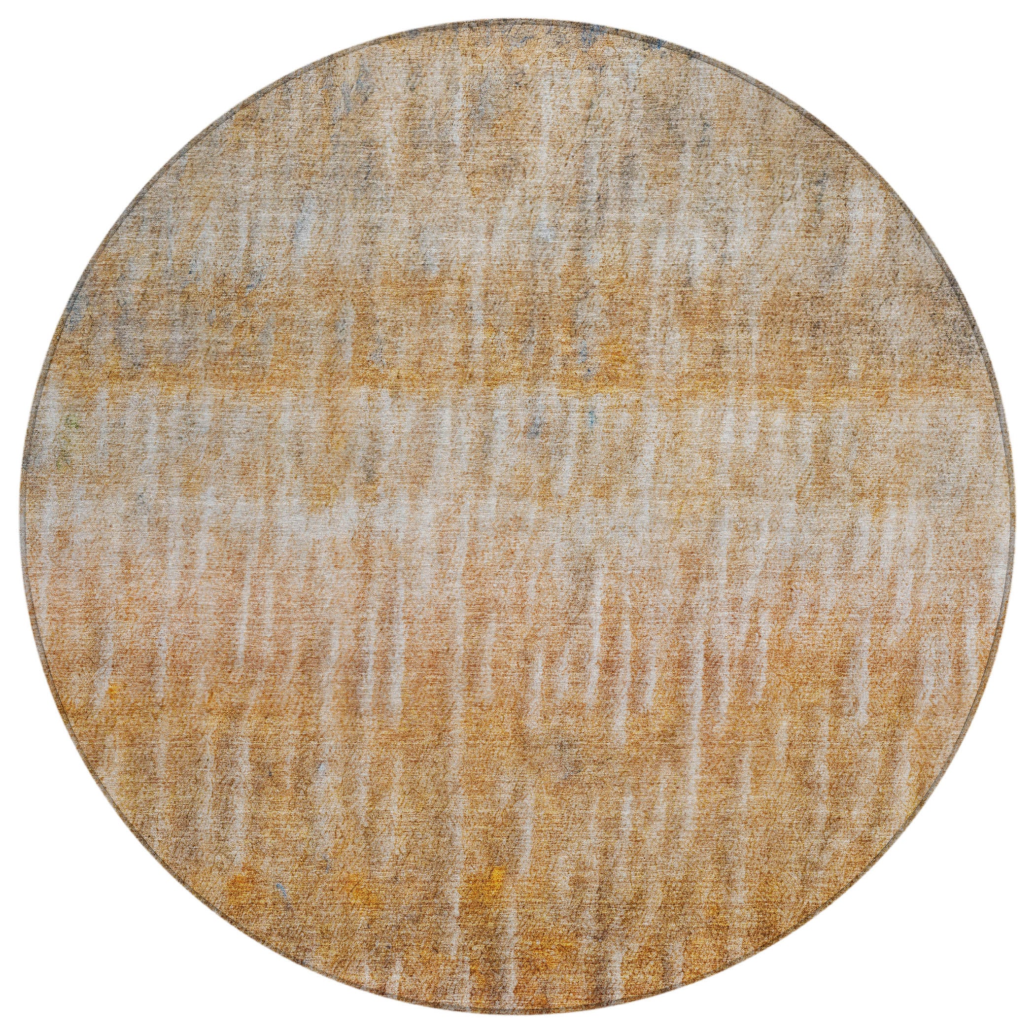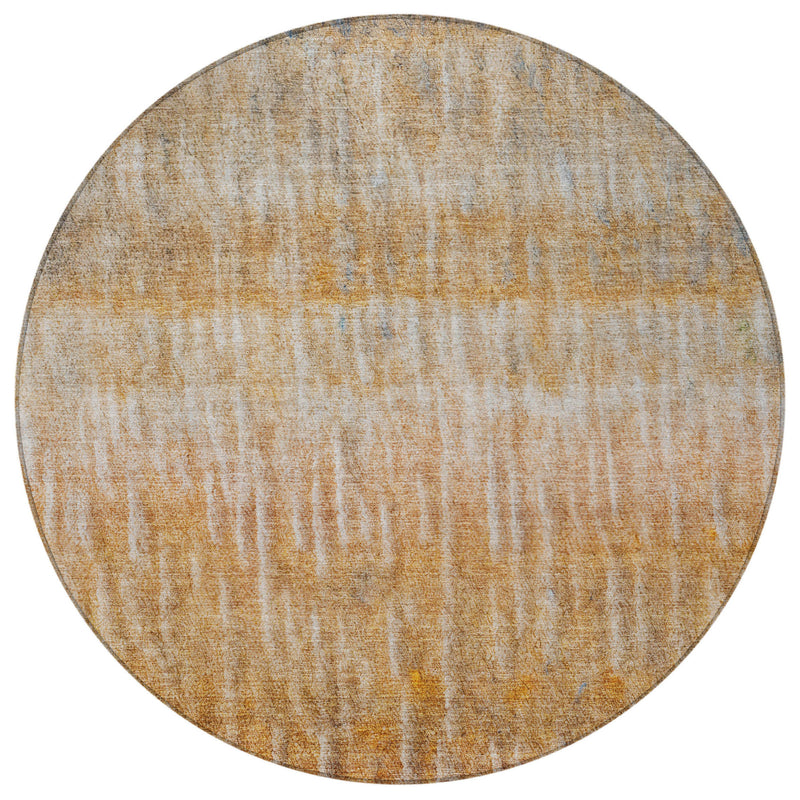 Set an inviting tone in your space with this 8-foot orange blue and beige round abstract washable indoor outdoor area rug. This geometric round shaped rug features a abstract pattern in orange, blue, and beige that combines a good looking print with a unique and updated shape. The mix of shape, color, and design gives this rug refreshing visual interest. Ideal for outdoor spaces or high traffic areas with kids and pets, this rug is made from heavy duty polyester that is stain resistant to help repel water, dirt, and stains. Makes a great way to dress up your patio, porch, or poolside, but also works well as a durable and easy to maintain option in the kitchen, family room, or mudroom. 96.00-inch h x 96.00-inch w x 0.19-inch d.