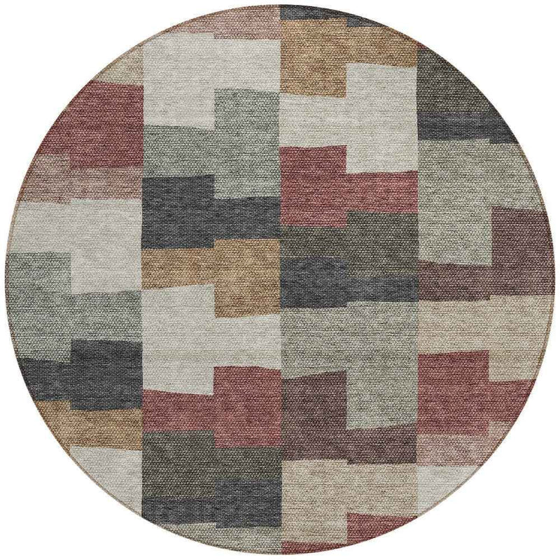 8' Orange Copper And Charcoal Round Geometric Washable Indoor Outdoor Area Rug 跳到内容