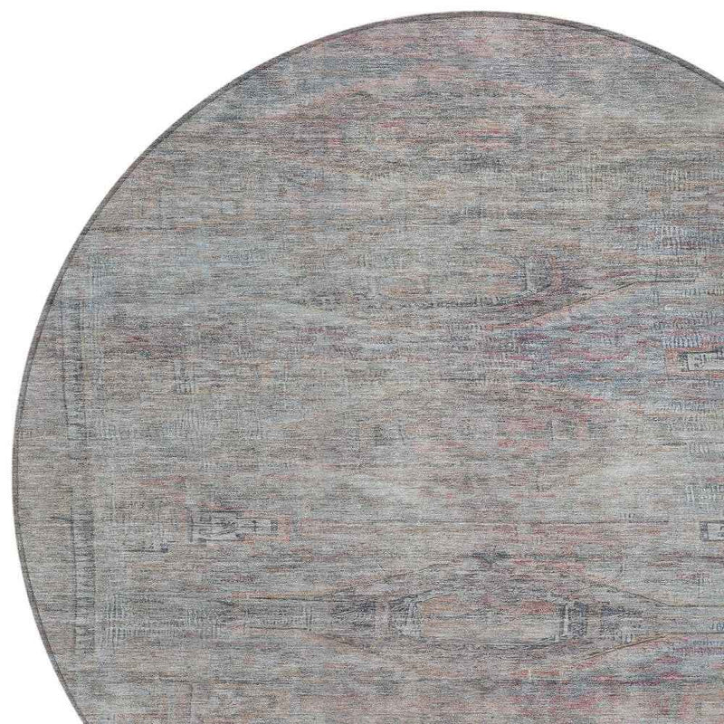 8' Pewter And Gray Round Aztec Washable Indoor Outdoor Area Rug