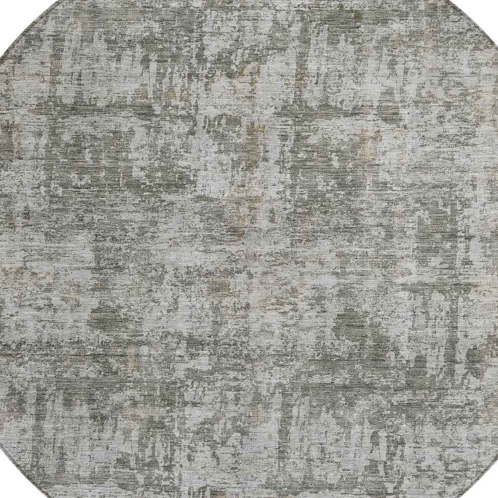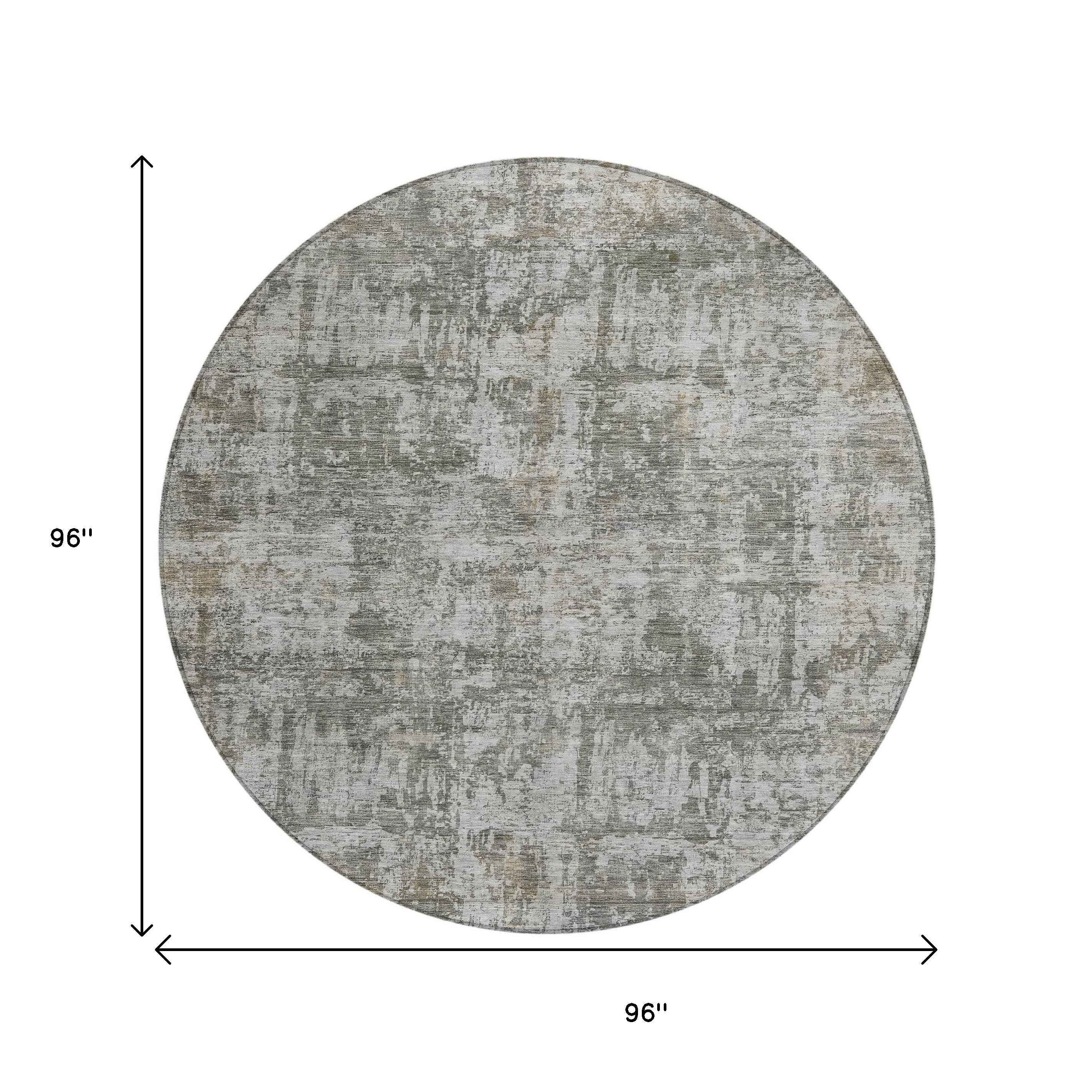 8' Pewter And Ivory Round Abstract Washable Indoor Outdoor Area Rug
