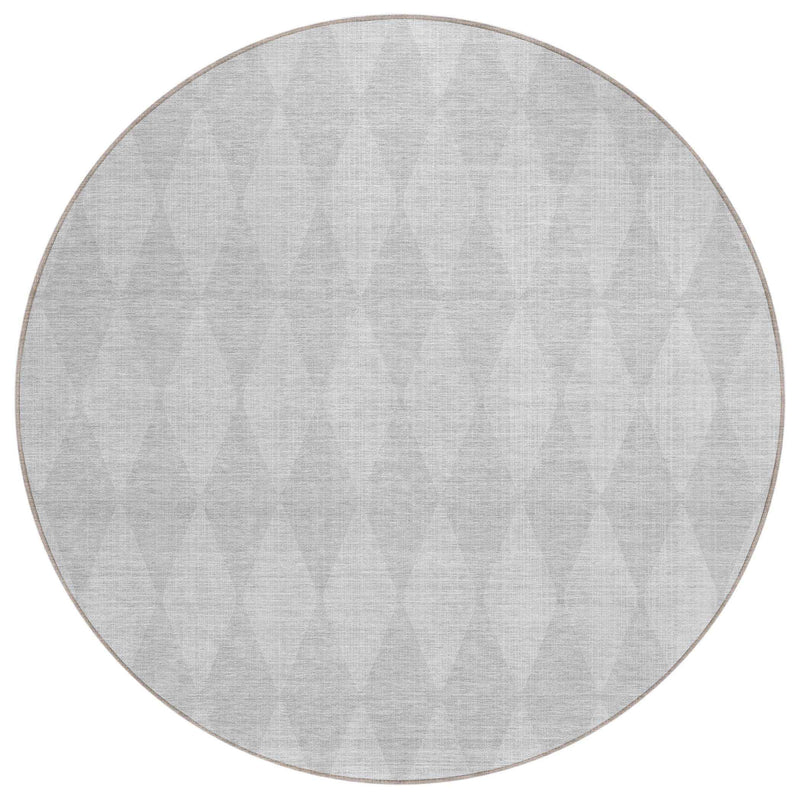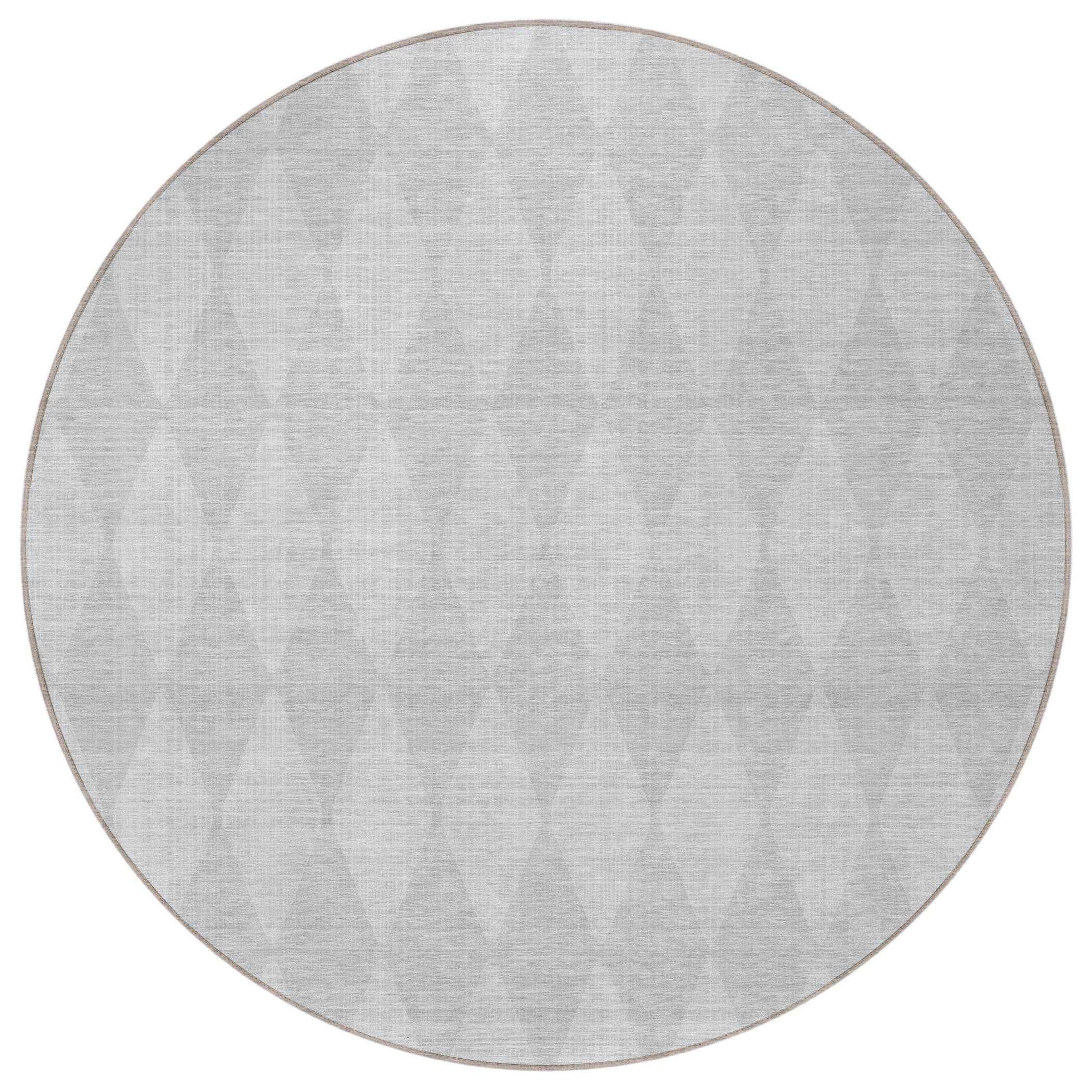 8' Pewter And Silver Round Geometric Washable Indoor Outdoor Area Rug