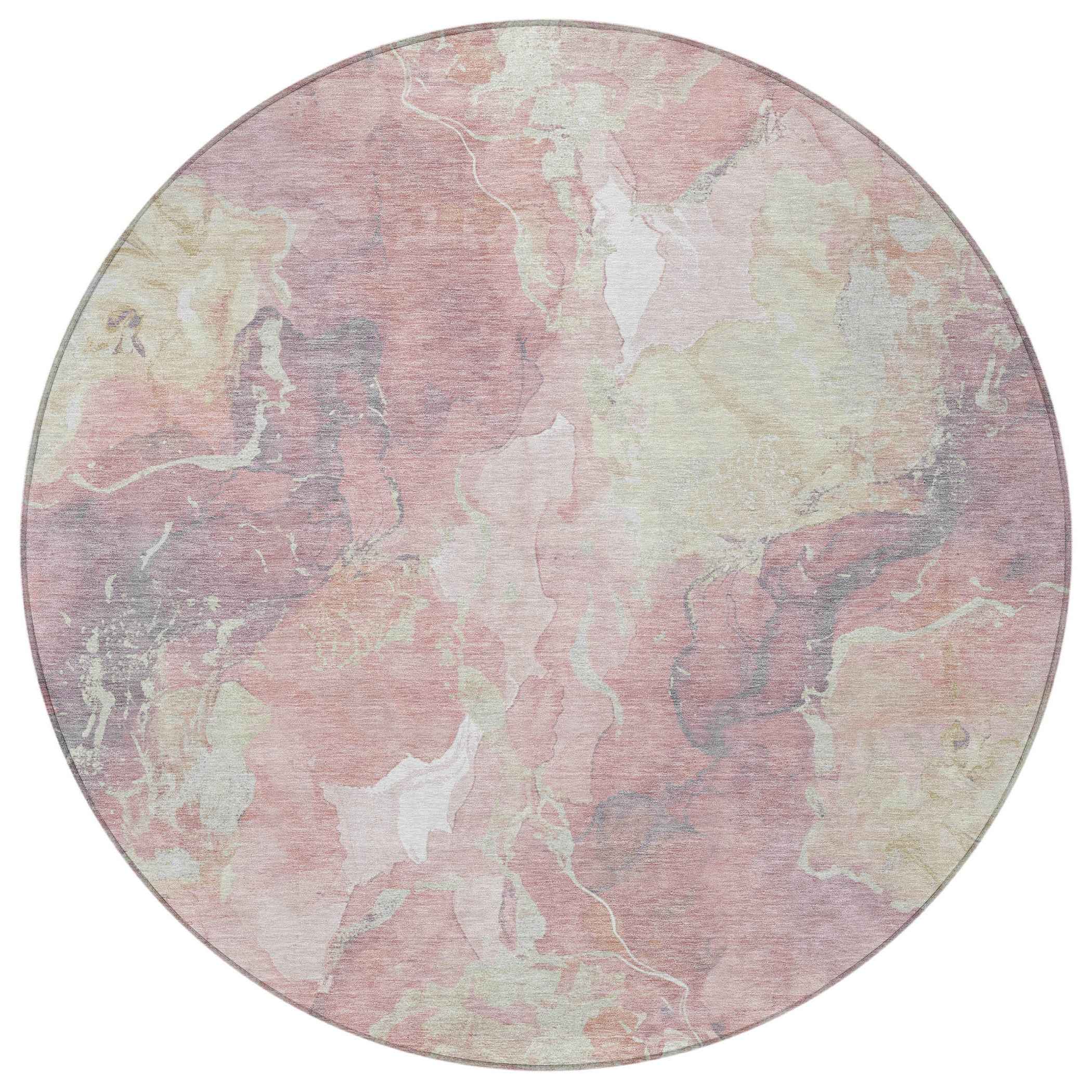 8' Pink And Beige Round Abstract Washable Indoor Outdoor Area Rug