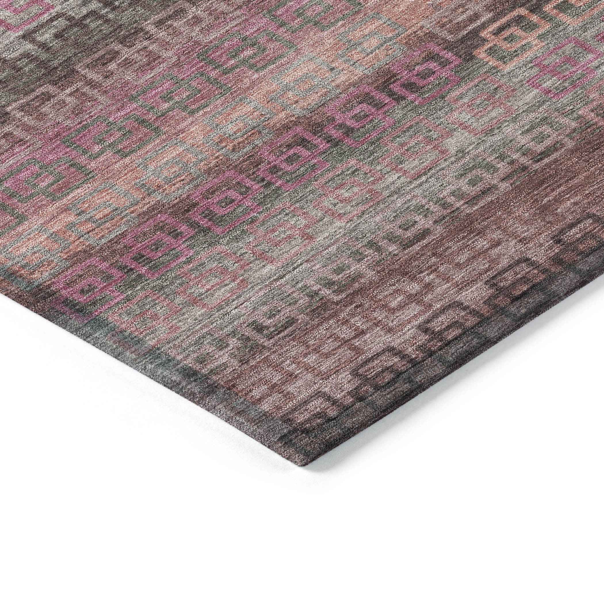 8' Pink And Gray Round Striped Washable Indoor Outdoor Area Rug