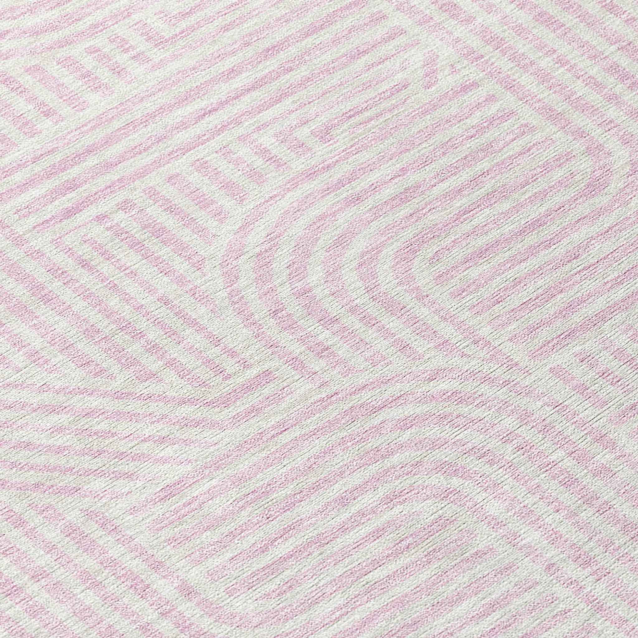 Set an inviting tone in your space with this 8-foot pink and ivory round abstract washable indoor outdoor area rug. This geometric round shaped rug features a abstract pattern in pink and ivory that combines a good looking print with a unique and updated shape. The mix of shape, color, and design gives this rug refreshing visual interest. Ideal for outdoor spaces or high traffic areas with kids and pets, this rug is made from heavy duty polyester that is stain resistant to help repel water, dirt, and stains. Versatile in use, durable, and easy to maintain, this rug is an ideal solution to add a decorative and inviting touch to your indoor or outdoor space. 96-inch h x 96-inch w x 0.19-inch d.
