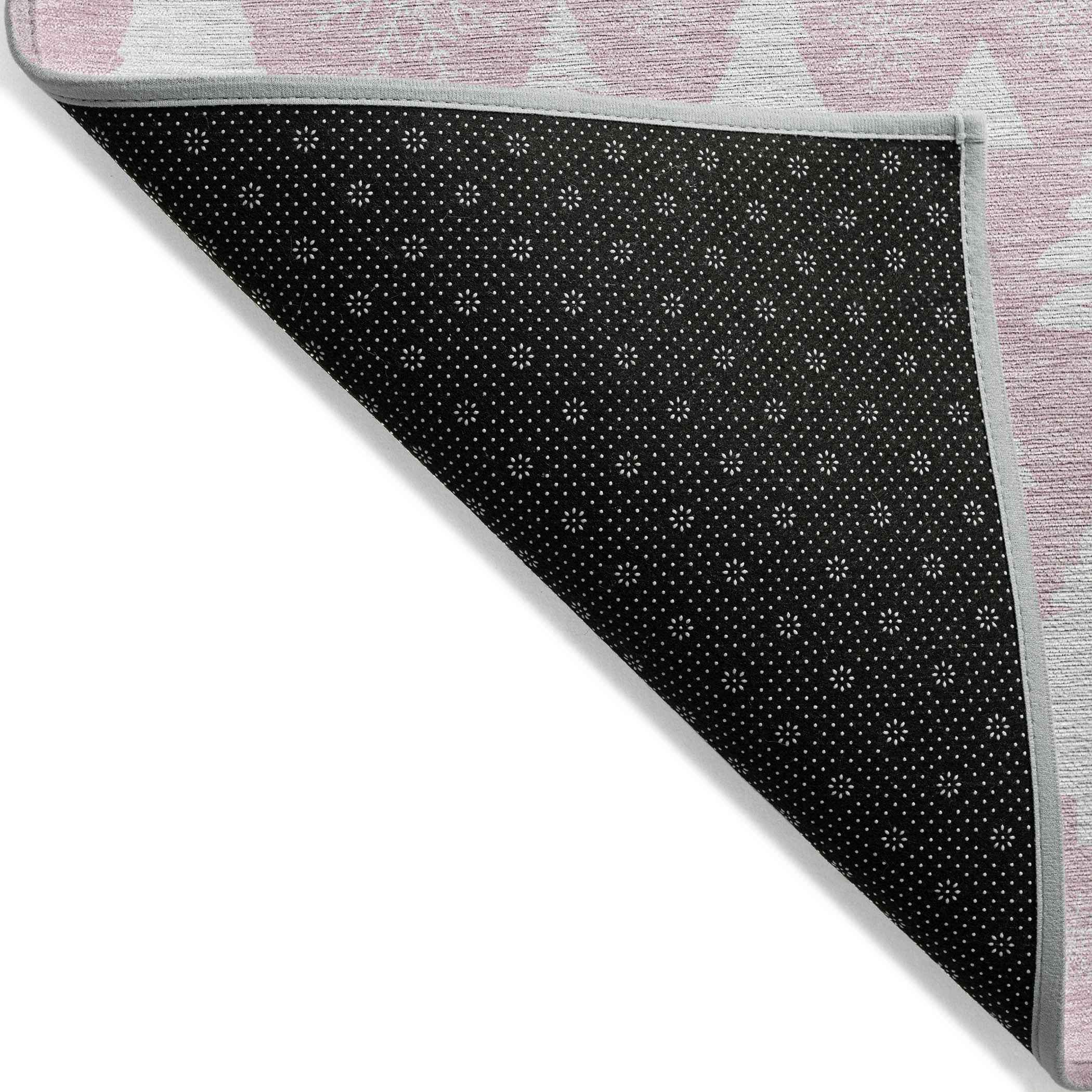Set an inviting tone in your space with this 8-foot pink and ivory round botanical leaves washable indoor outdoor area rug. This geometric round shaped rug features a botanical leaves pattern in pink and ivory that combines a good looking print with a unique and updated shape. The mix of shape, color, and design gives this rug refreshing visual interest. Ideal for outdoor spaces or high traffic areas with kids and pets, this rug is made from heavy duty polyester that is stain resistant to help repel water, dirt, and stains. Makes a great way to dress up your patio, porch, or poolside, but also works well as a durable and easy to maintain option in the kitchen, family room, or mudroom. 96-inch h x 96-inch w x 0.19-inch d.