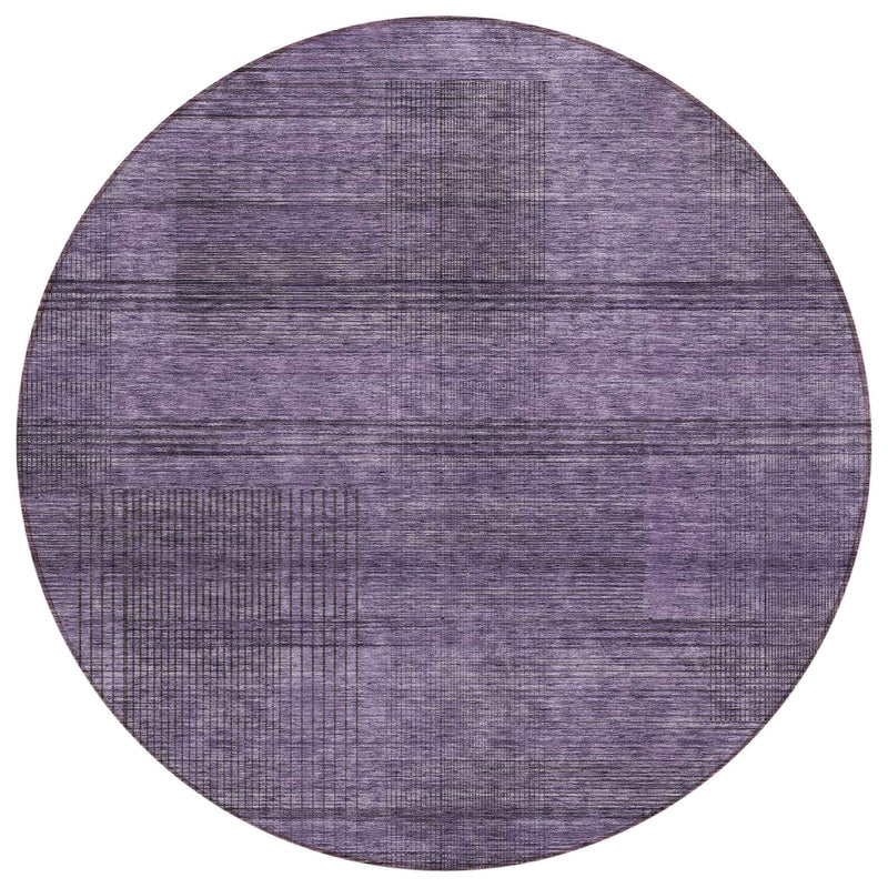 8' Plum Purple And Gray Round Striped Washable Indoor Outdoor Area Rug 跳到内容