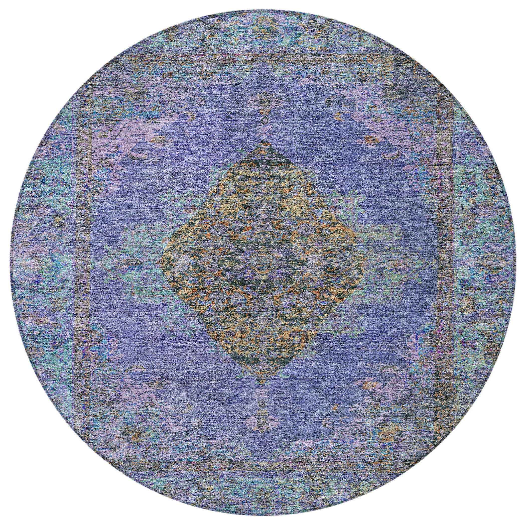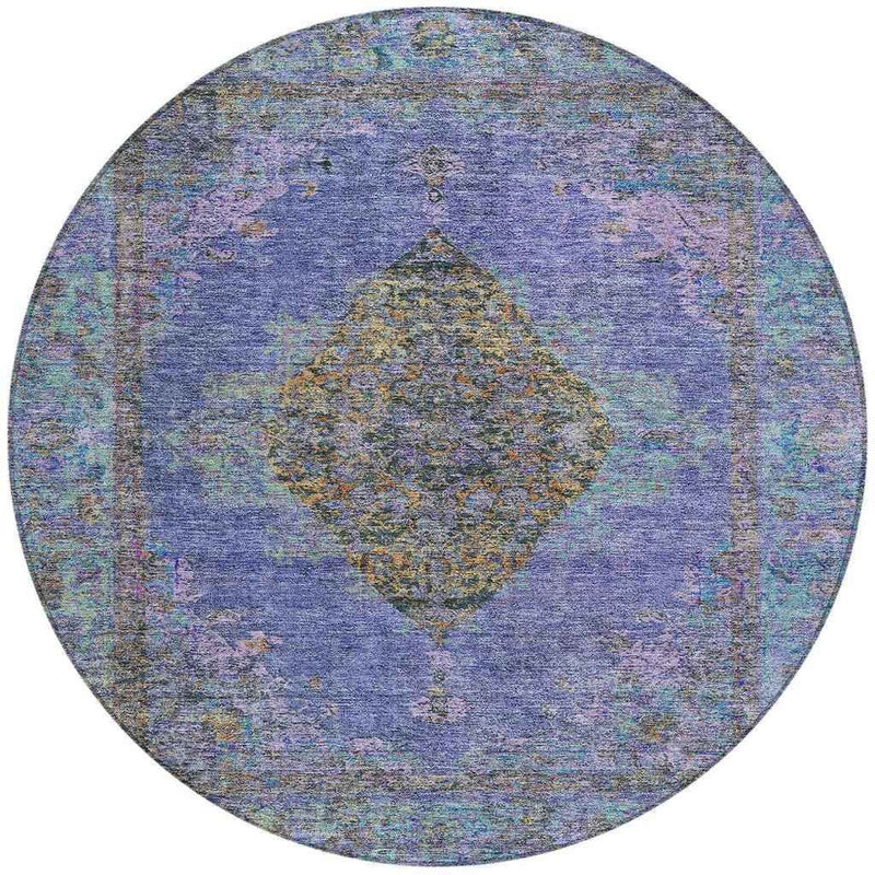8' Purple And Gold Round Medallion Washable Indoor Outdoor Area Rug - 跳到内容