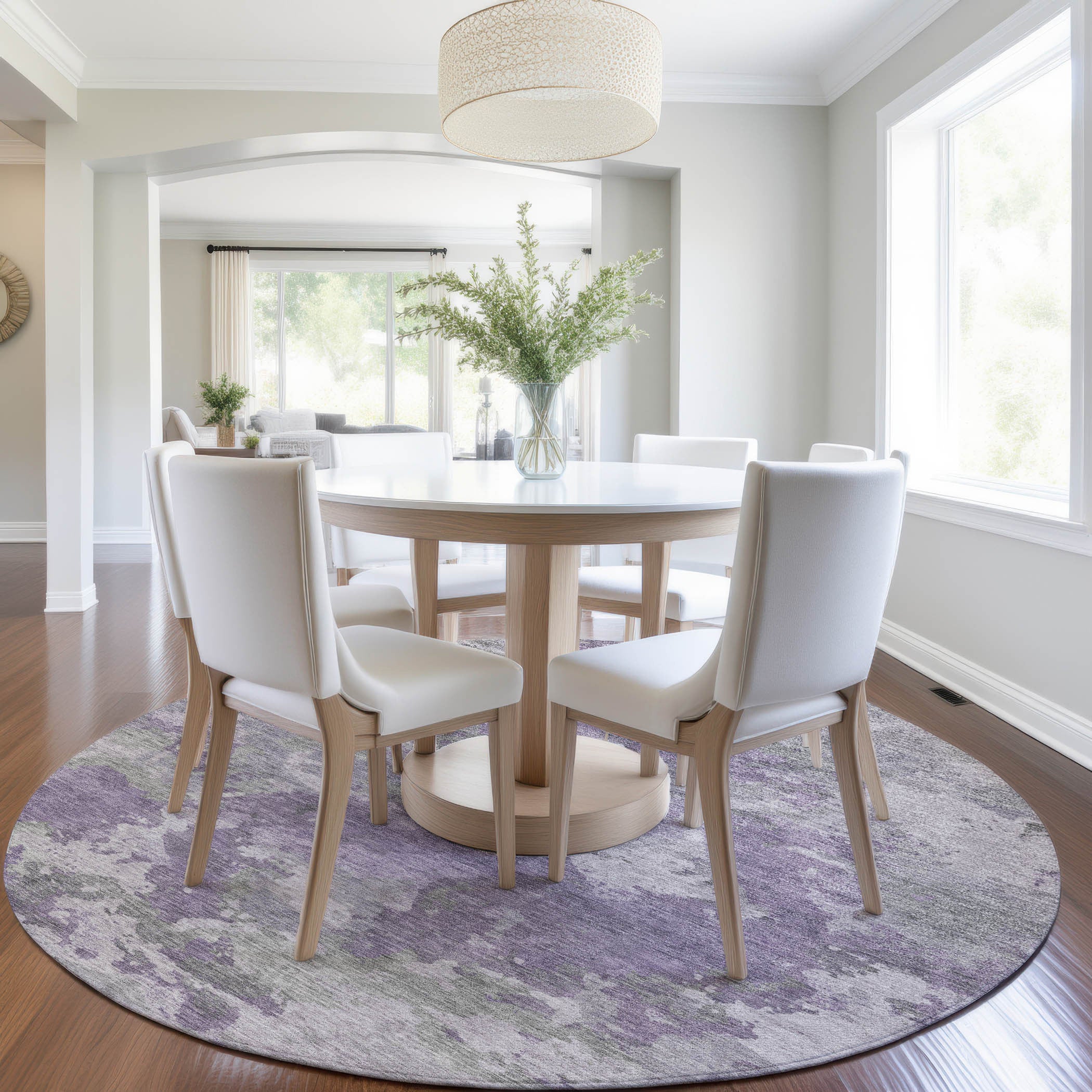 8' Purple And Gray Round Abstract Washable Indoor Outdoor Area Rug 跳到内容