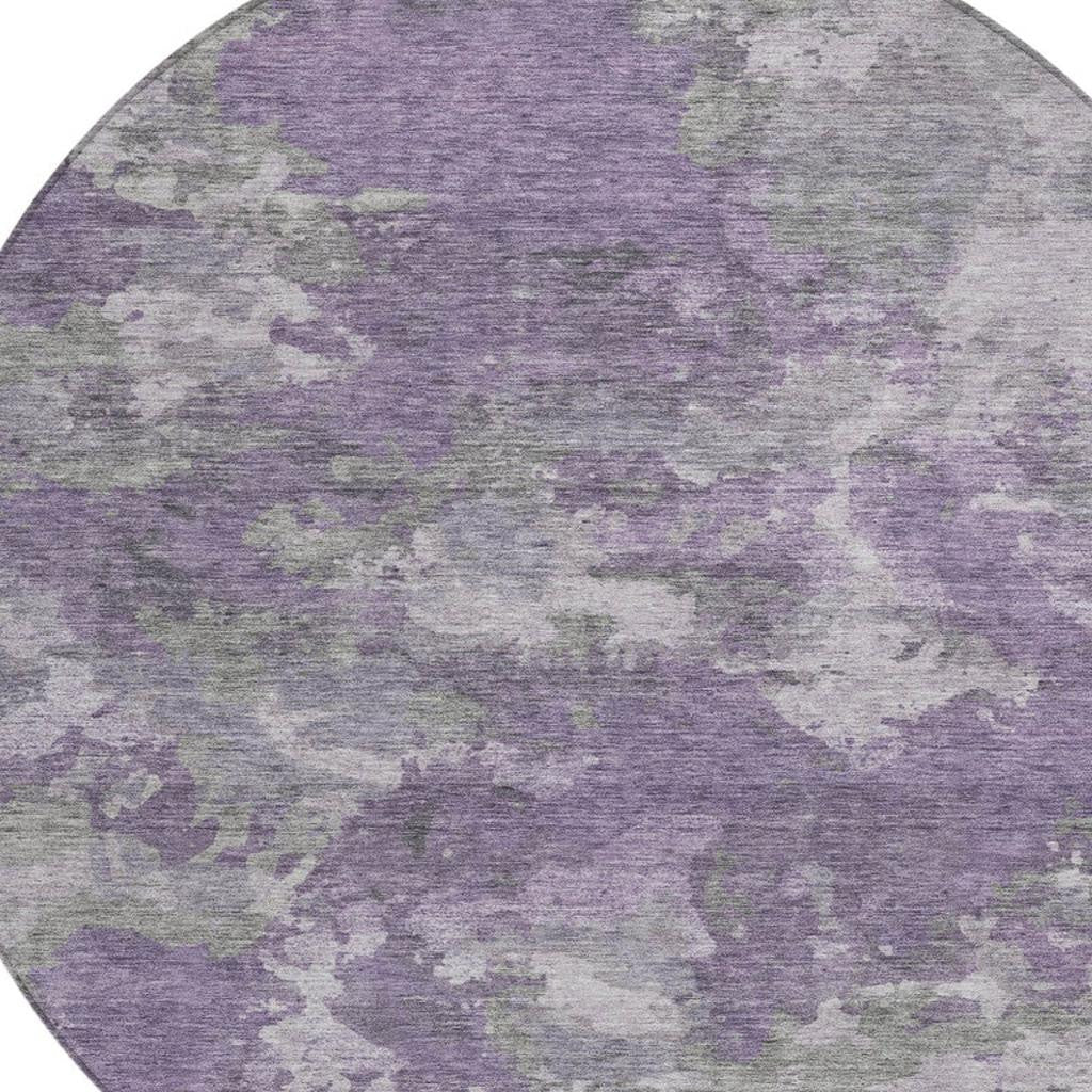 8' Purple And Gray Round Abstract Washable Indoor Outdoor Area Rug