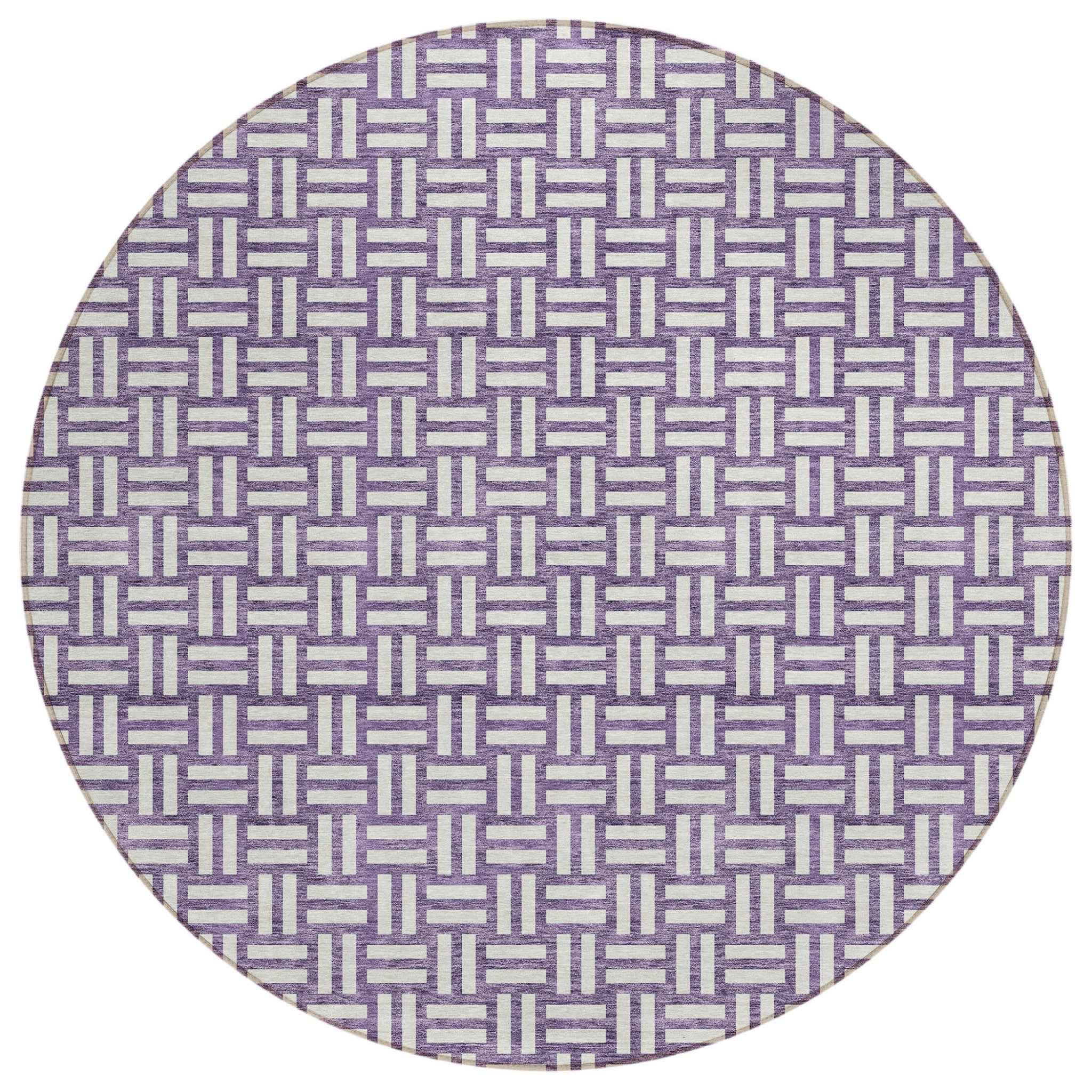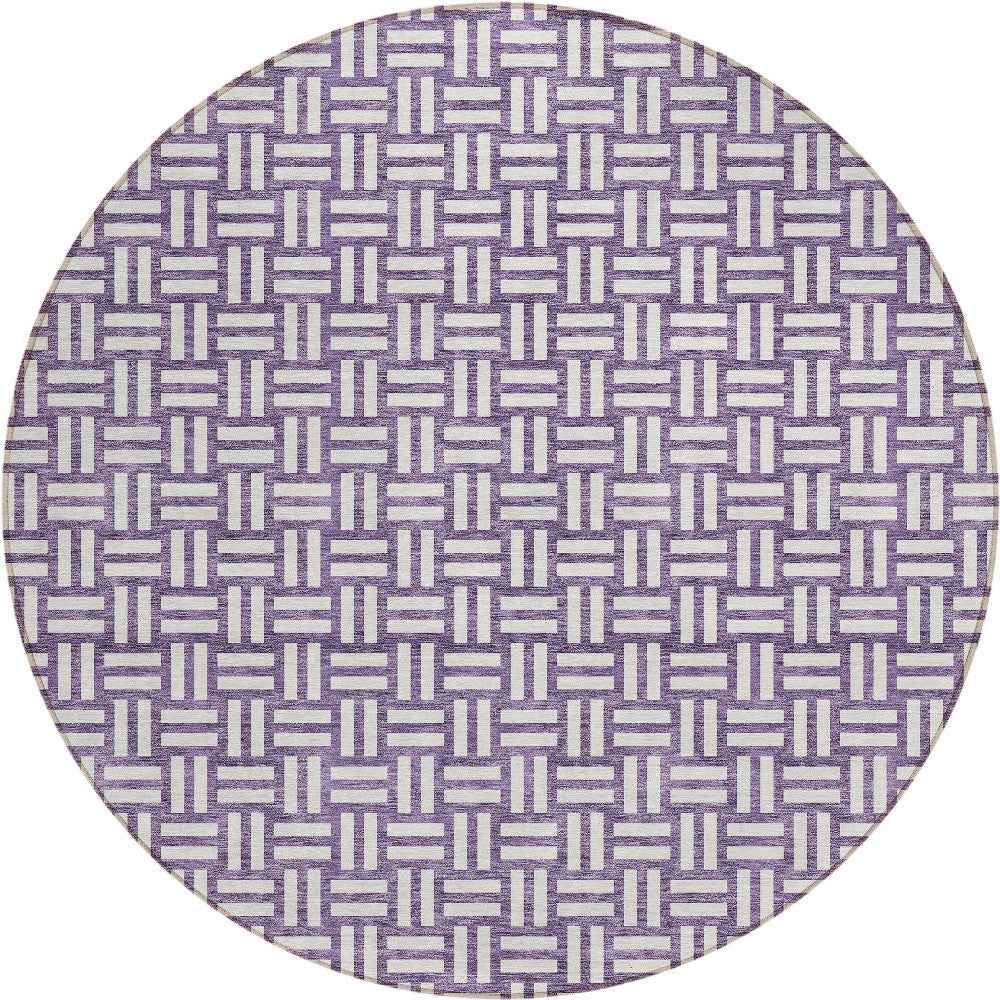 8' Purple And Ivory Round Geometric Washable Indoor Outdoor Area Rug - 跳到内容