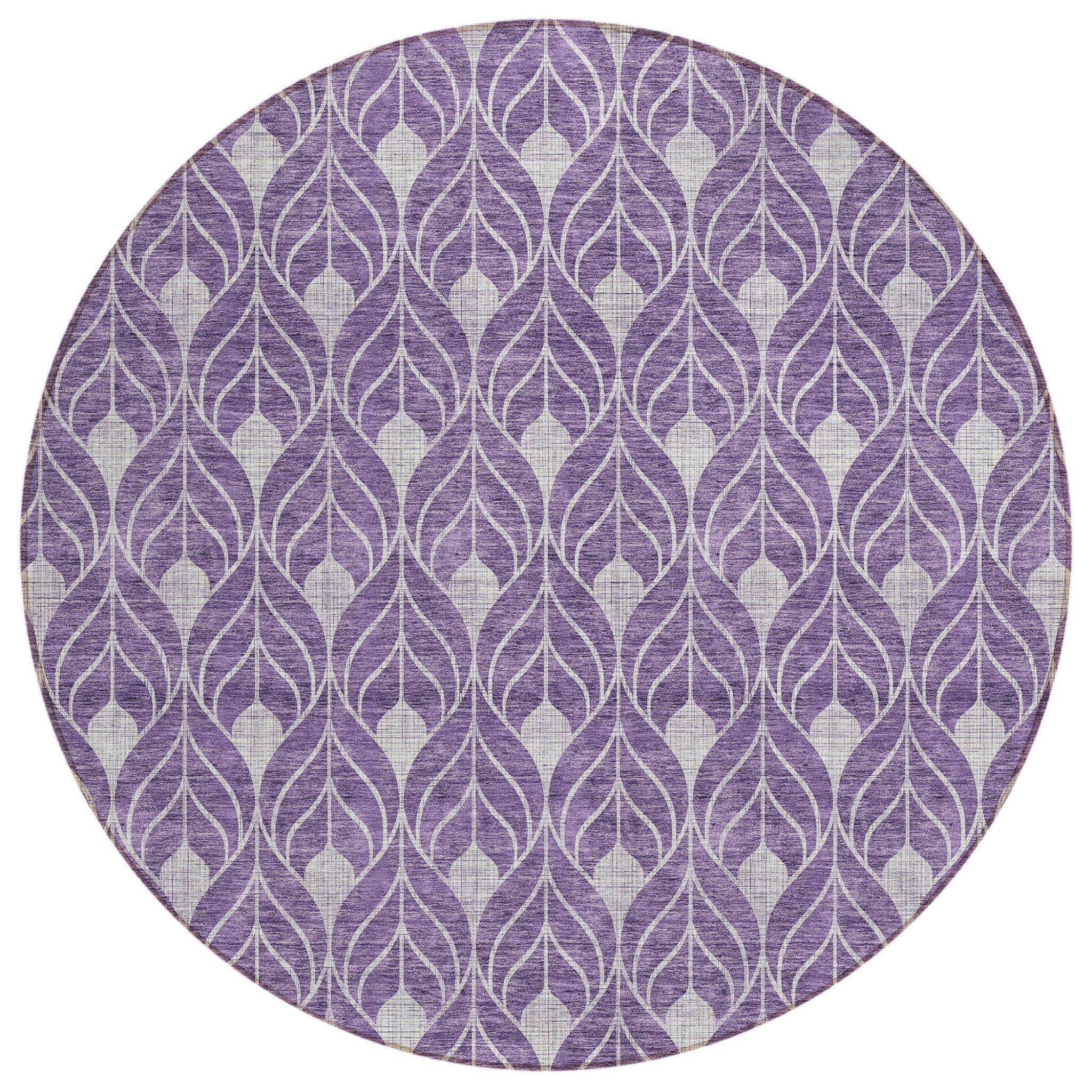 8' Purple And Ivory Round Geometric Washable Indoor Outdoor Area Rug 跳到内容