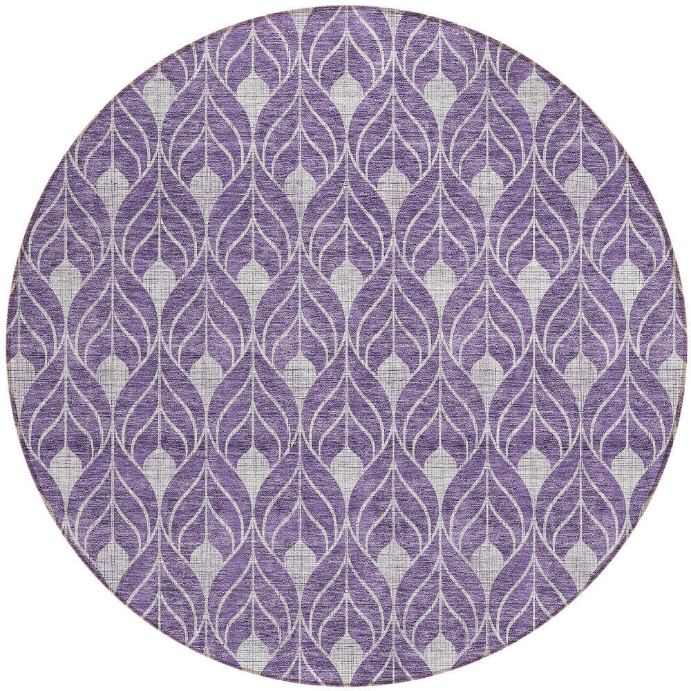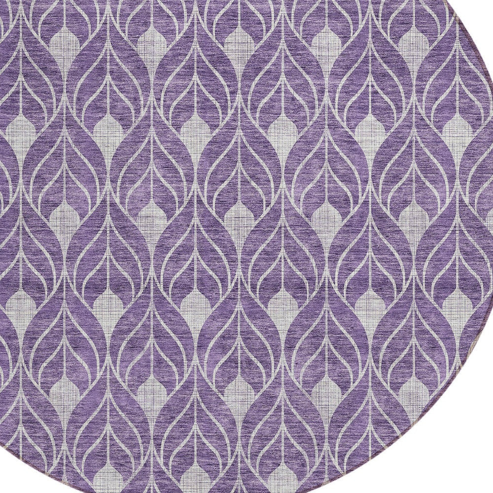 8' Purple And Ivory Round Geometric Washable Indoor Outdoor Area Rug