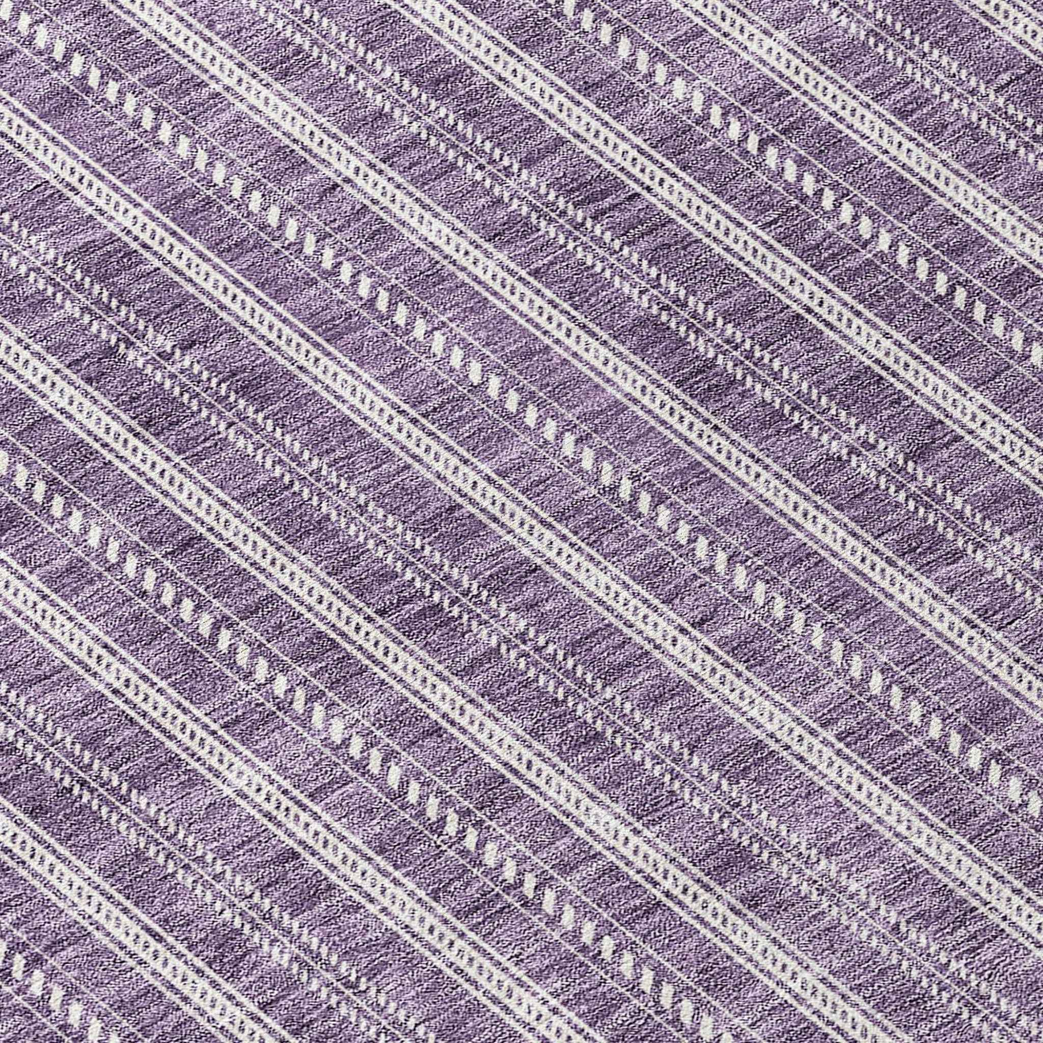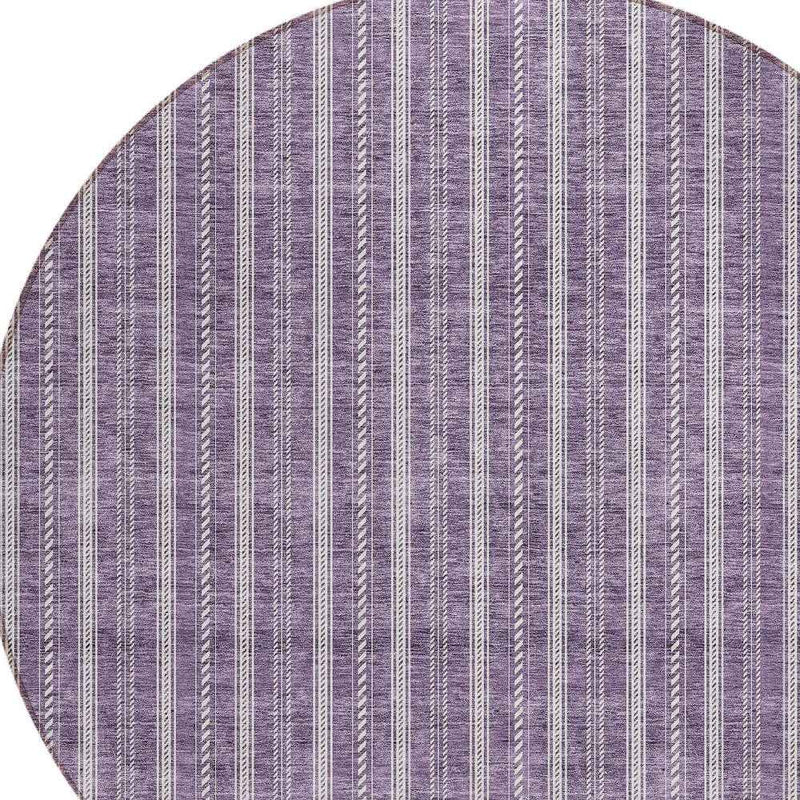 8' Purple And Ivory Round Striped Washable Indoor Outdoor Area Rug