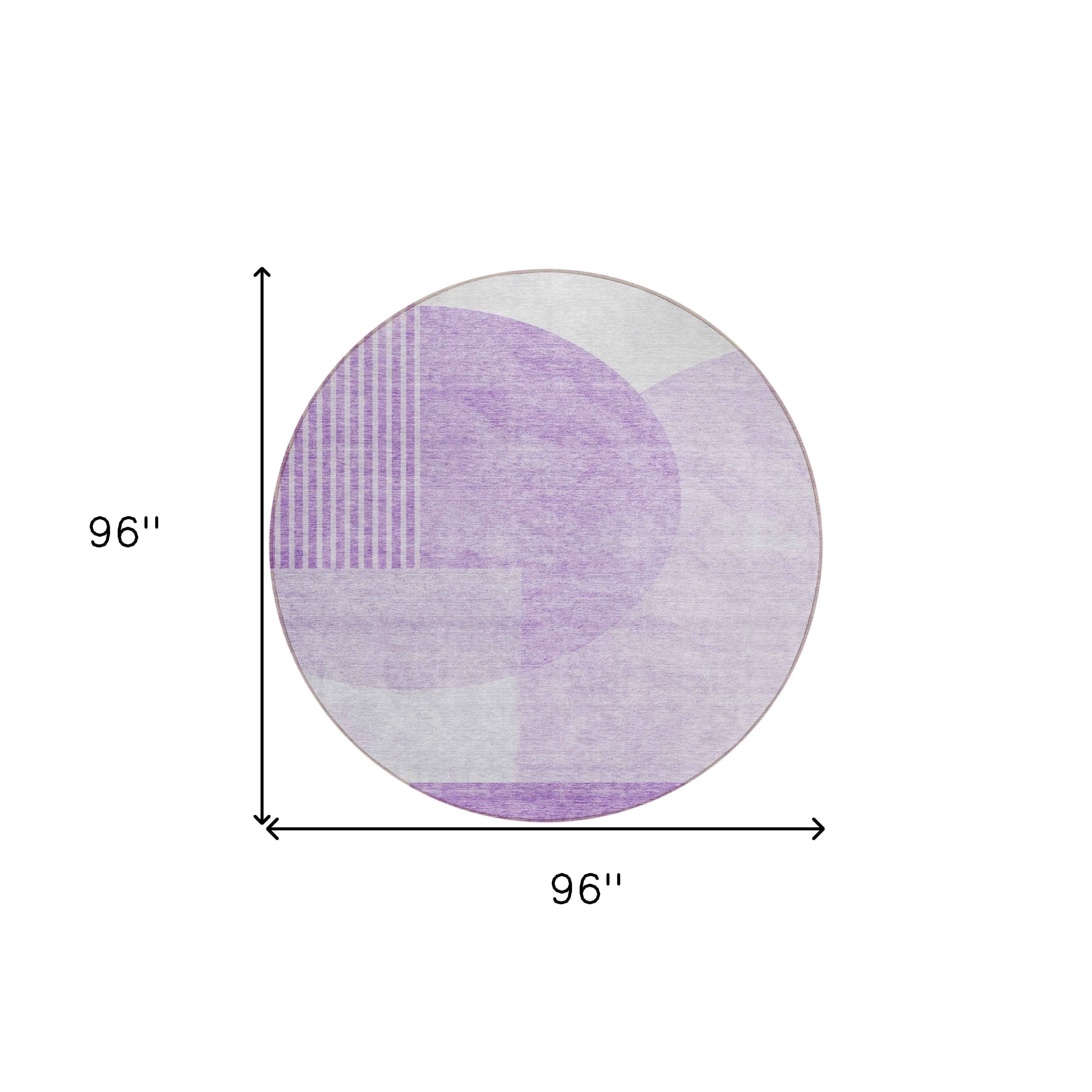 8' Purple And Lavender Round Geometric Washable Indoor Outdoor Area Rug