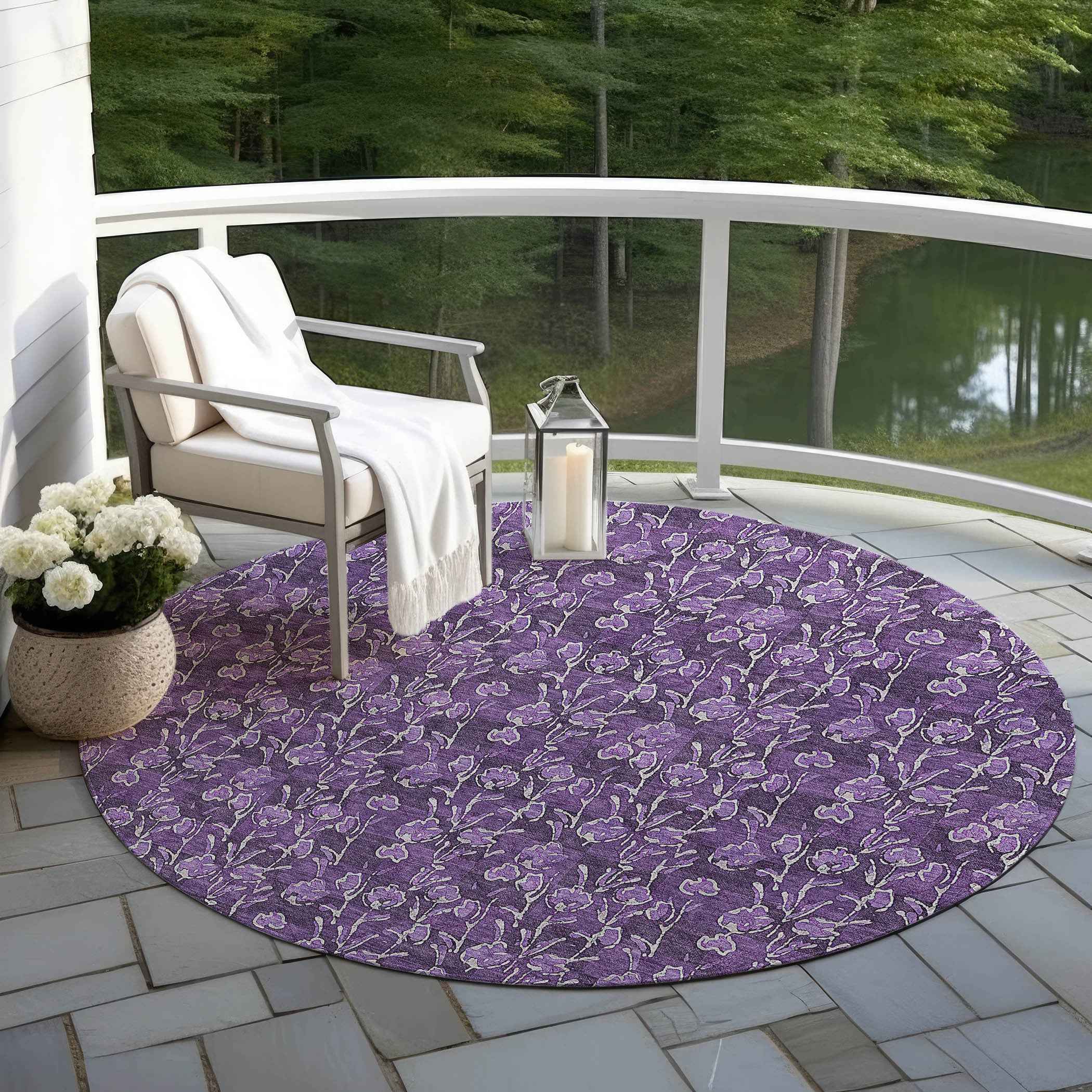 8' Purple Eggplant And Ivory Round Floral Washable Indoor Outdoor Area Rug