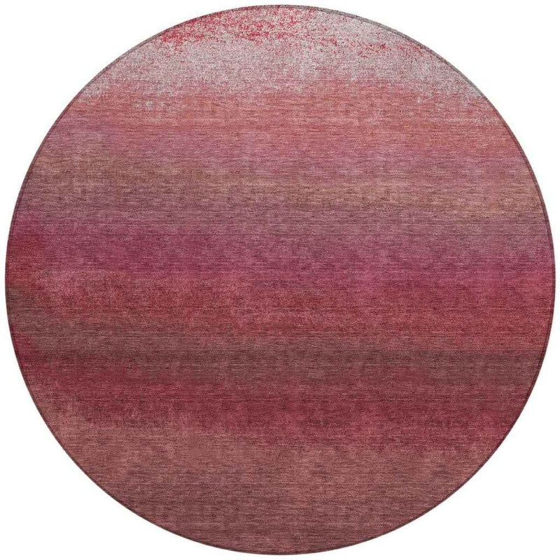 8' Red And Blush Round Ombre Washable Indoor Outdoor Area Rug