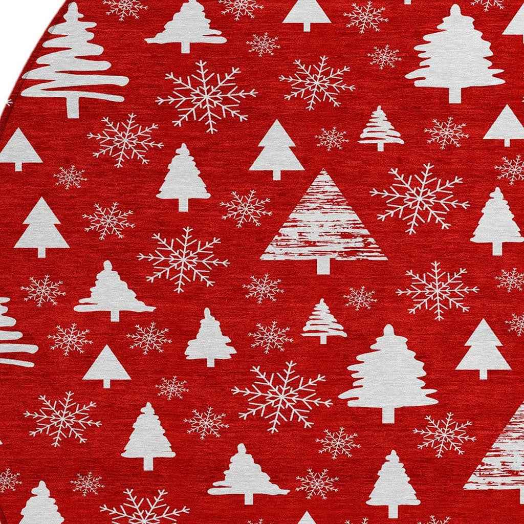 8' Red And Ivory Round Botanical Leaves Washable Indoor Outdoor Area Rug