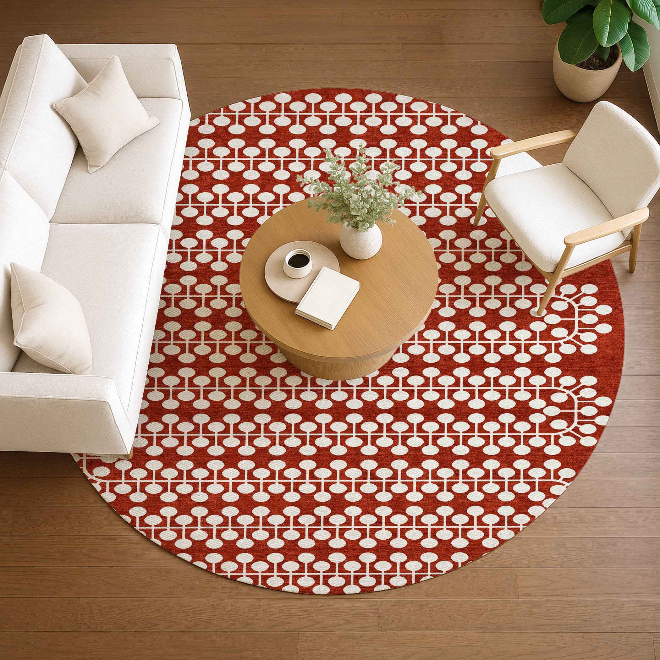 8' Red And Ivory Round Geometric Washable Indoor Outdoor Area Rug - 跳到内容