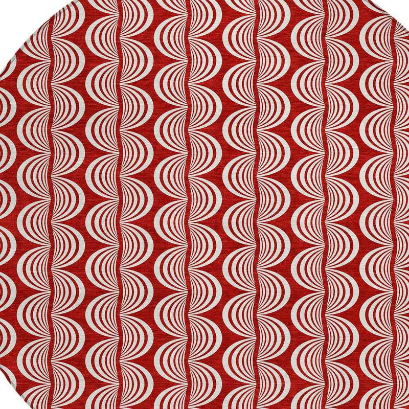 8' Red And Ivory Round Ogee Washable Indoor Outdoor Area Rug
